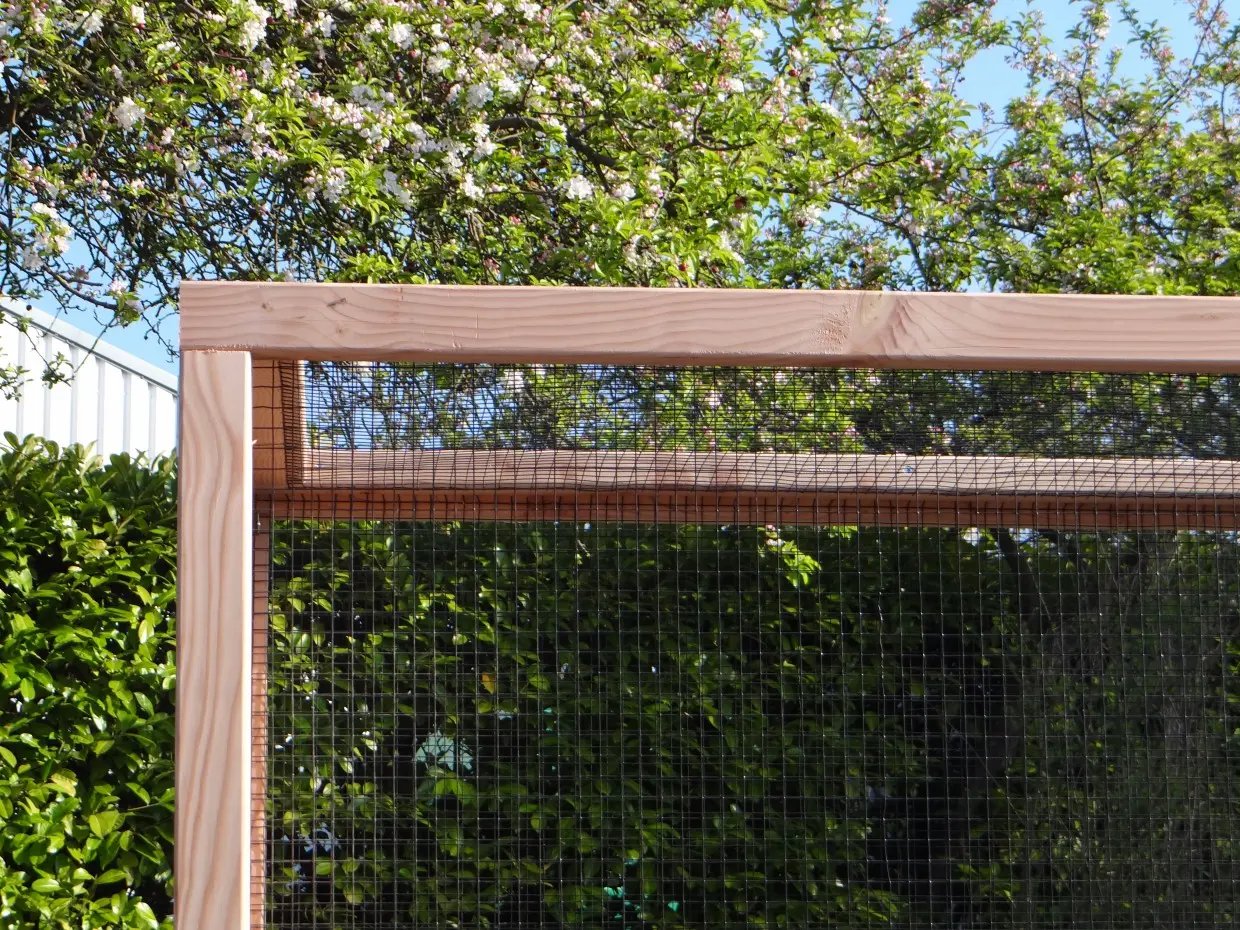 - Des panneaux en mailles plastifiés noires, de 1,1 mm épaisseur. Des mailles de 13x13 mm