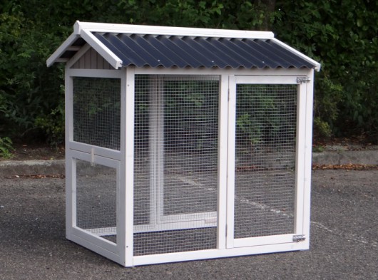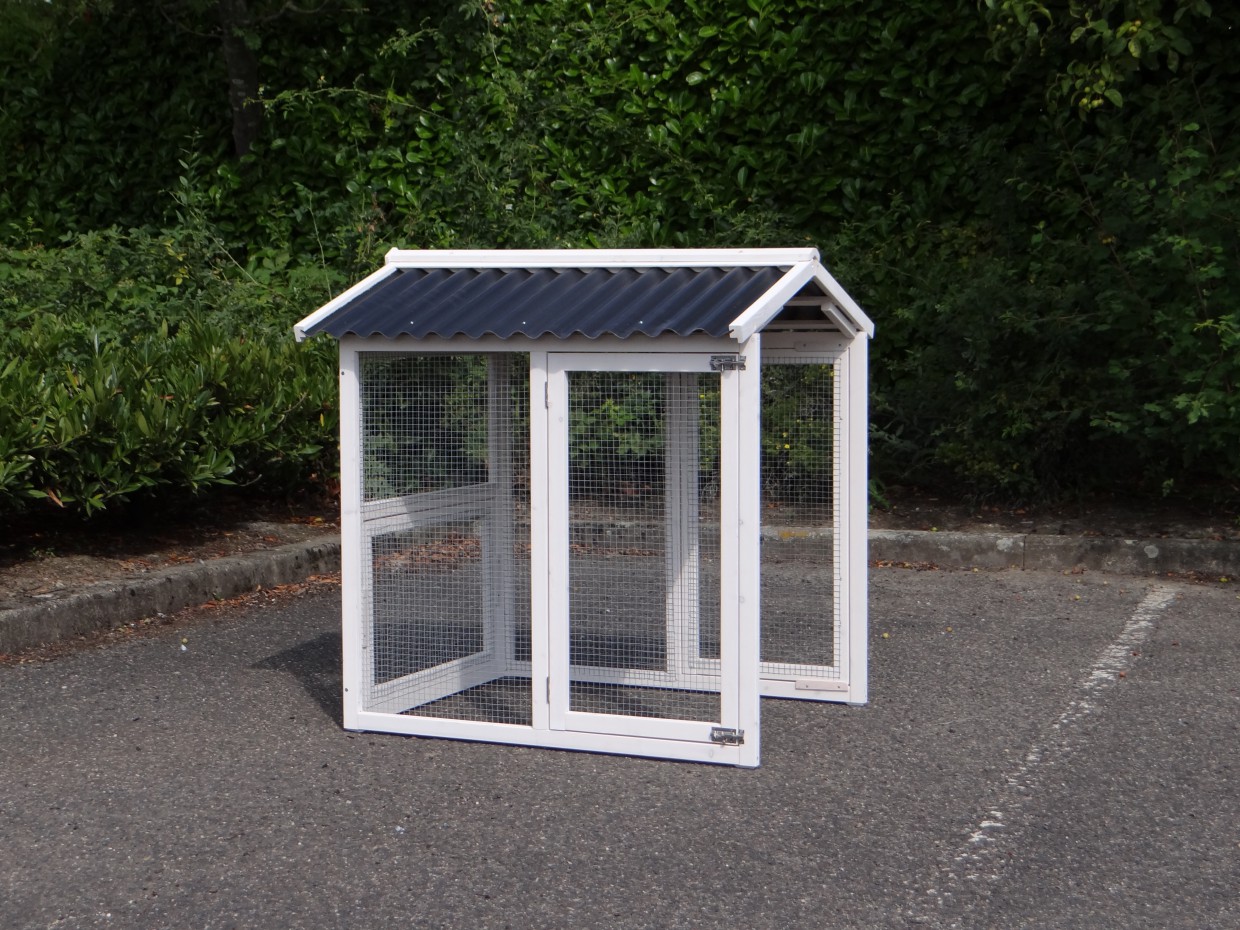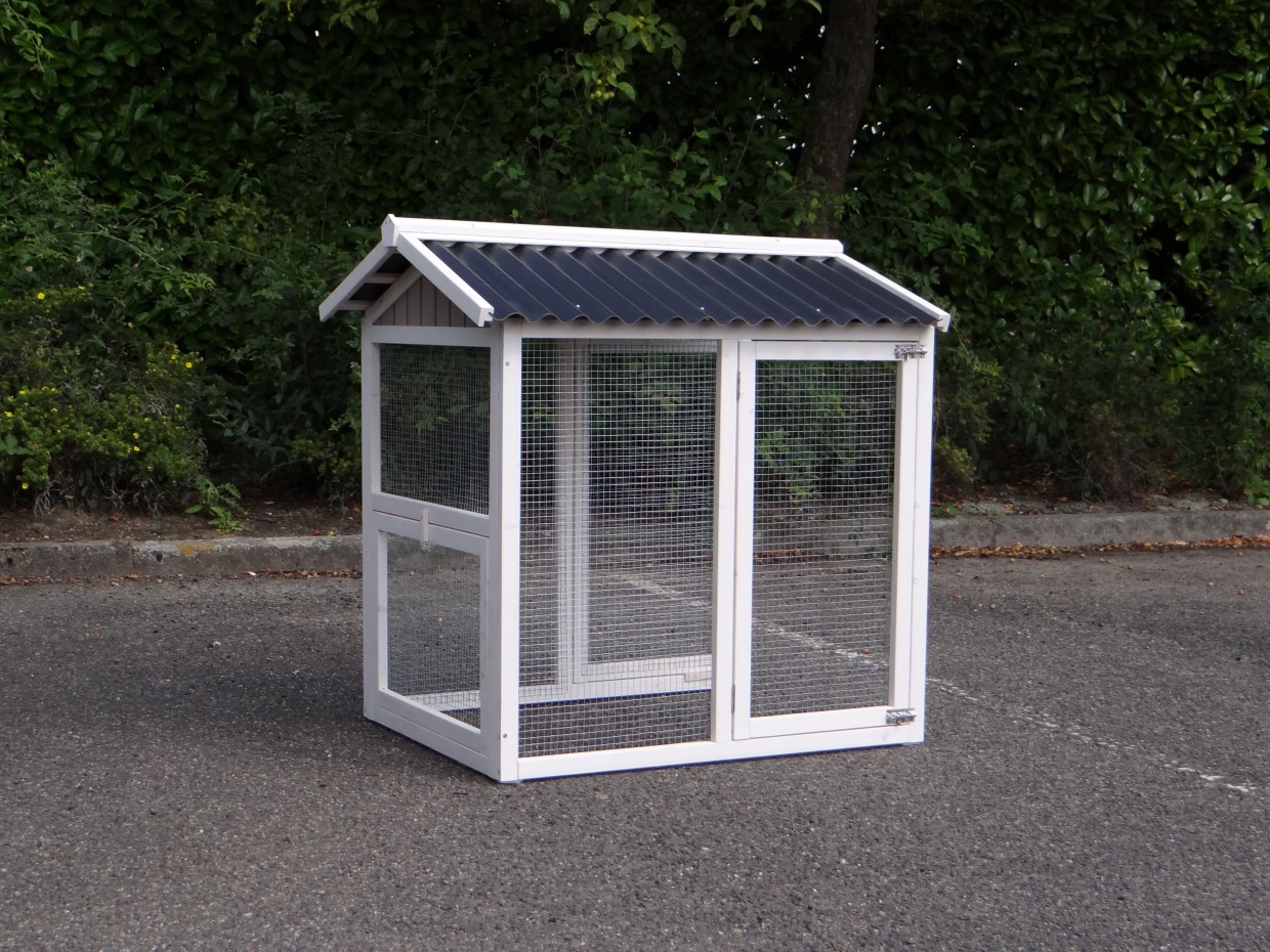 Il est conseillé de traiter périodiquement les charnières et les serrures avec un spray en silicone ou un spray pour serrures pour éviter la rouille et la corrosion. Si l'animal n'est pas dans un endroit abrité, nous vous conseillons d'ancrer l'enclos.