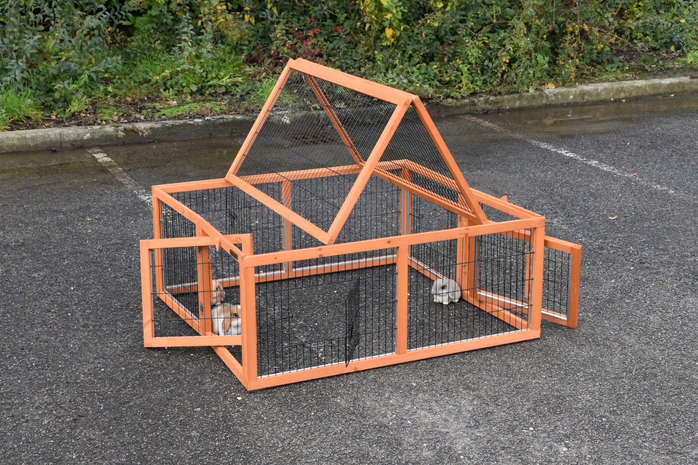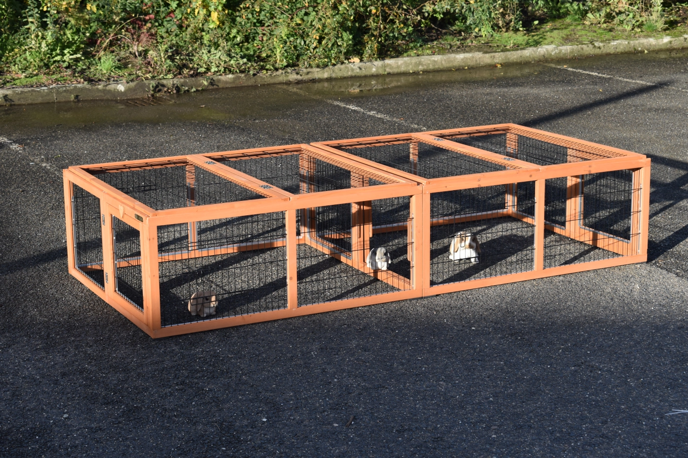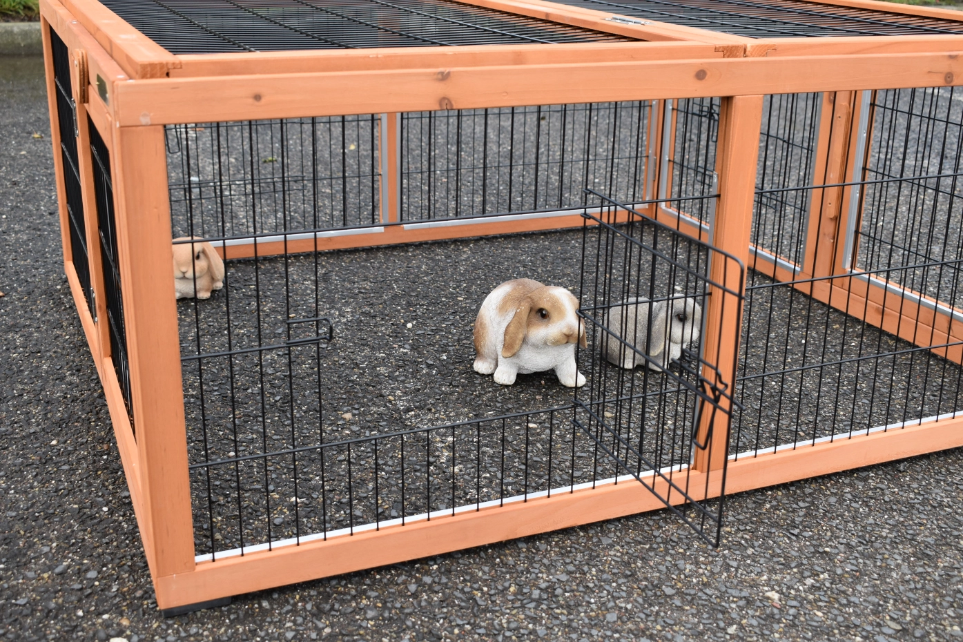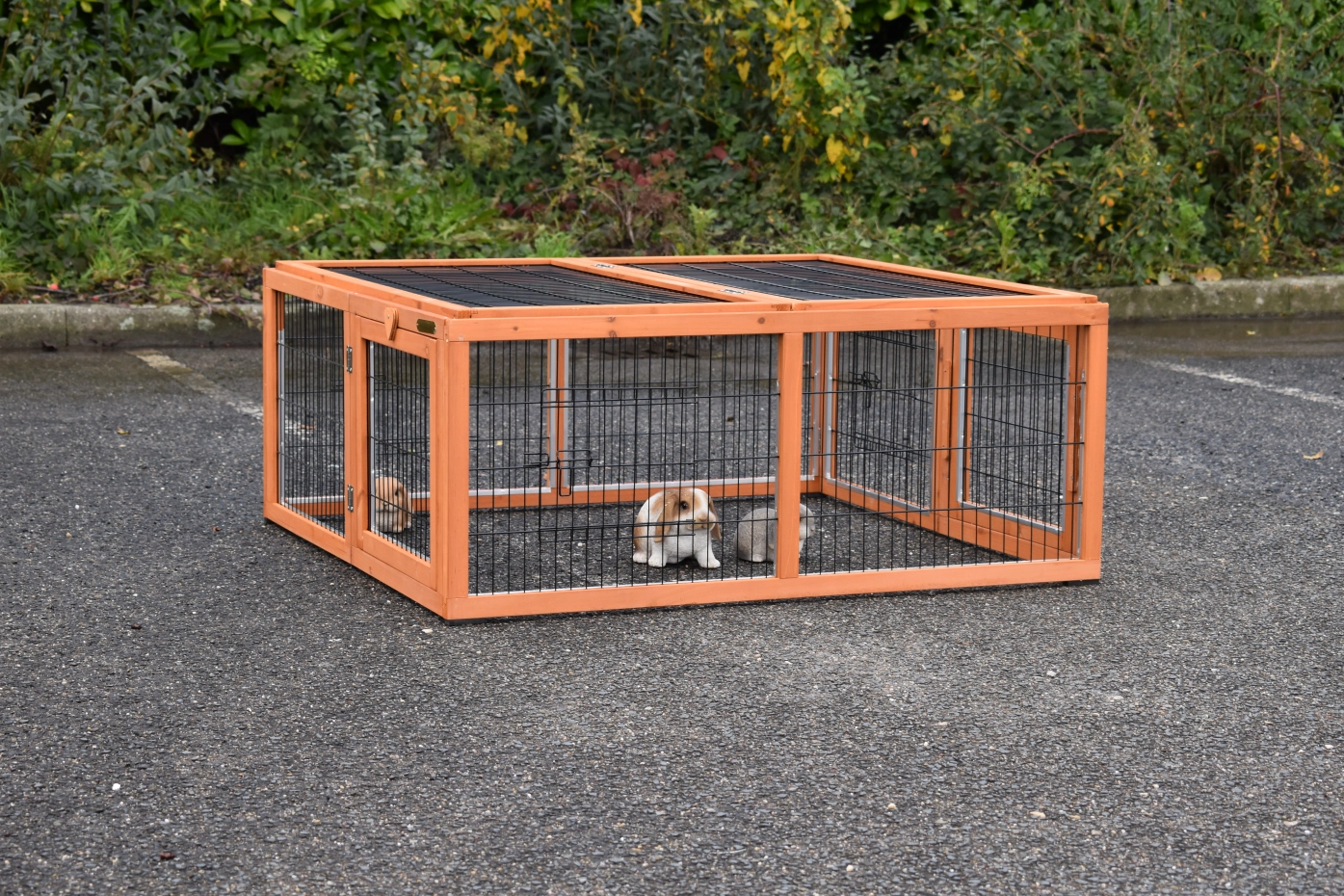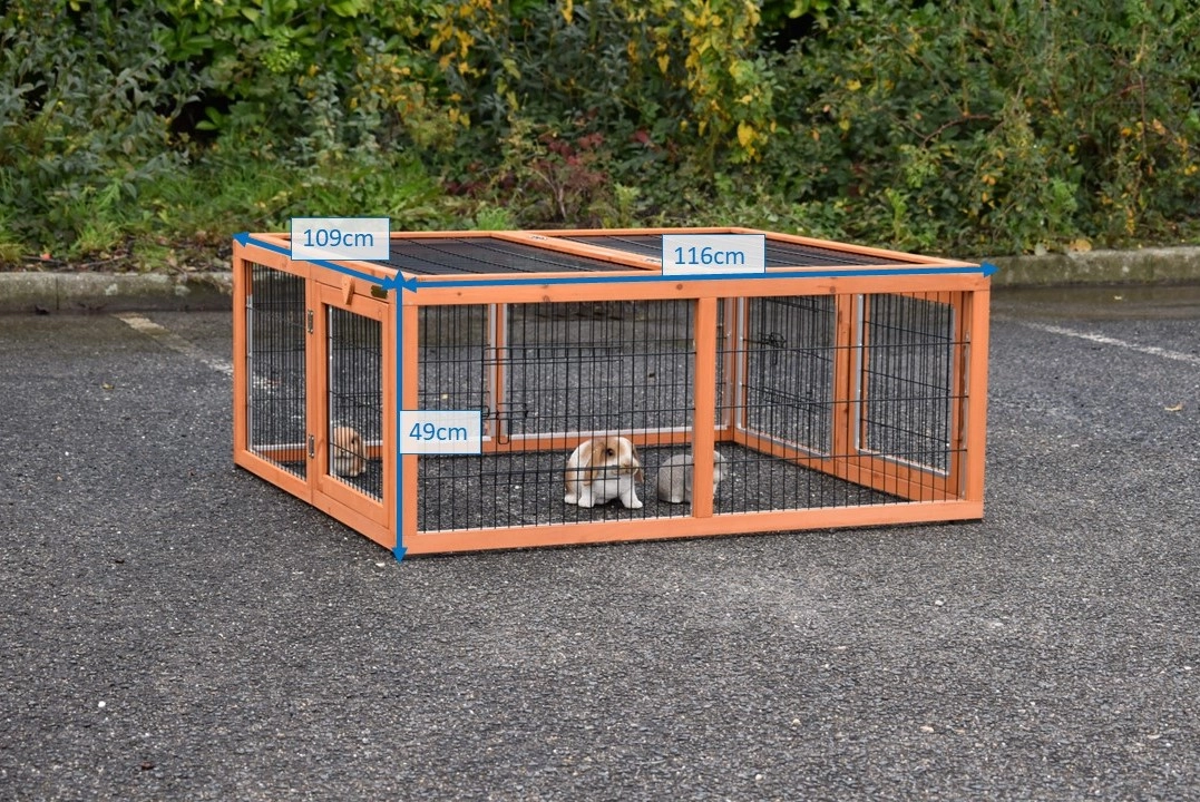 L'enclos pour lapins Multirun est équipé de bandes en aluminium sur la plupart des bords de l'enclos pour éviter les mâchouillements. L'enclos pour lapins est entièrement pliable et facilement connectable à divers clapier pour lapins. Il peut également être installé séparément de votre clapier pour lapins. Cet enclos pratique dispose de 3 portes en grillage sur 3 côtés, et 2 côtés ont des panneaux amovibles. Cela permet de combiner plusieurs enclos. Le dessus de l'enclos pour lapins est également facilement pliable et amovible. Un enclos multifonction en effet !