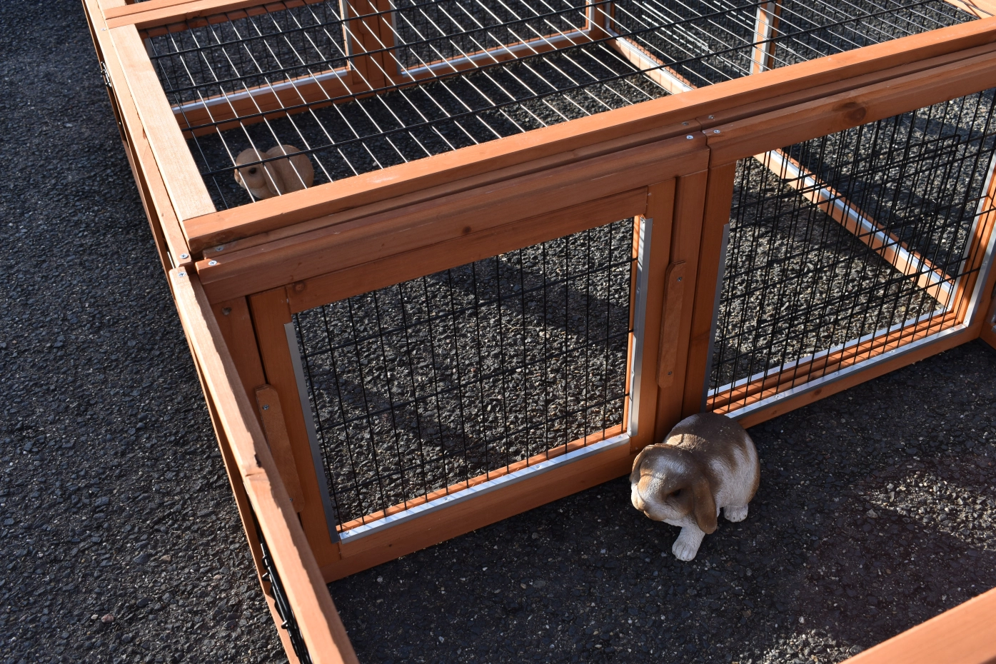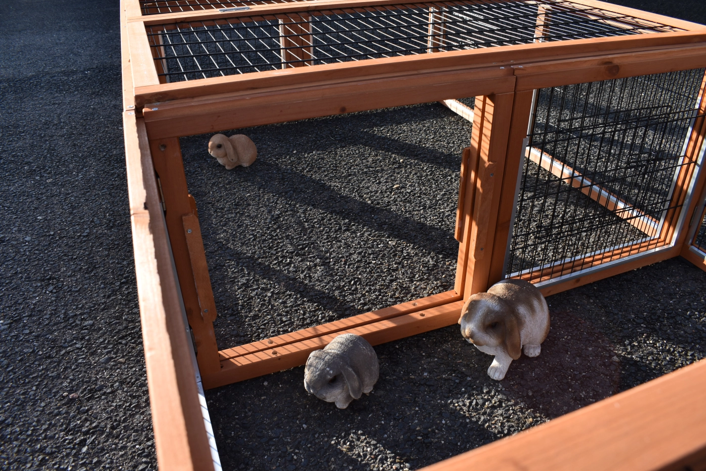 - L'enclos d'extension est doté d'un toit en fil de fer