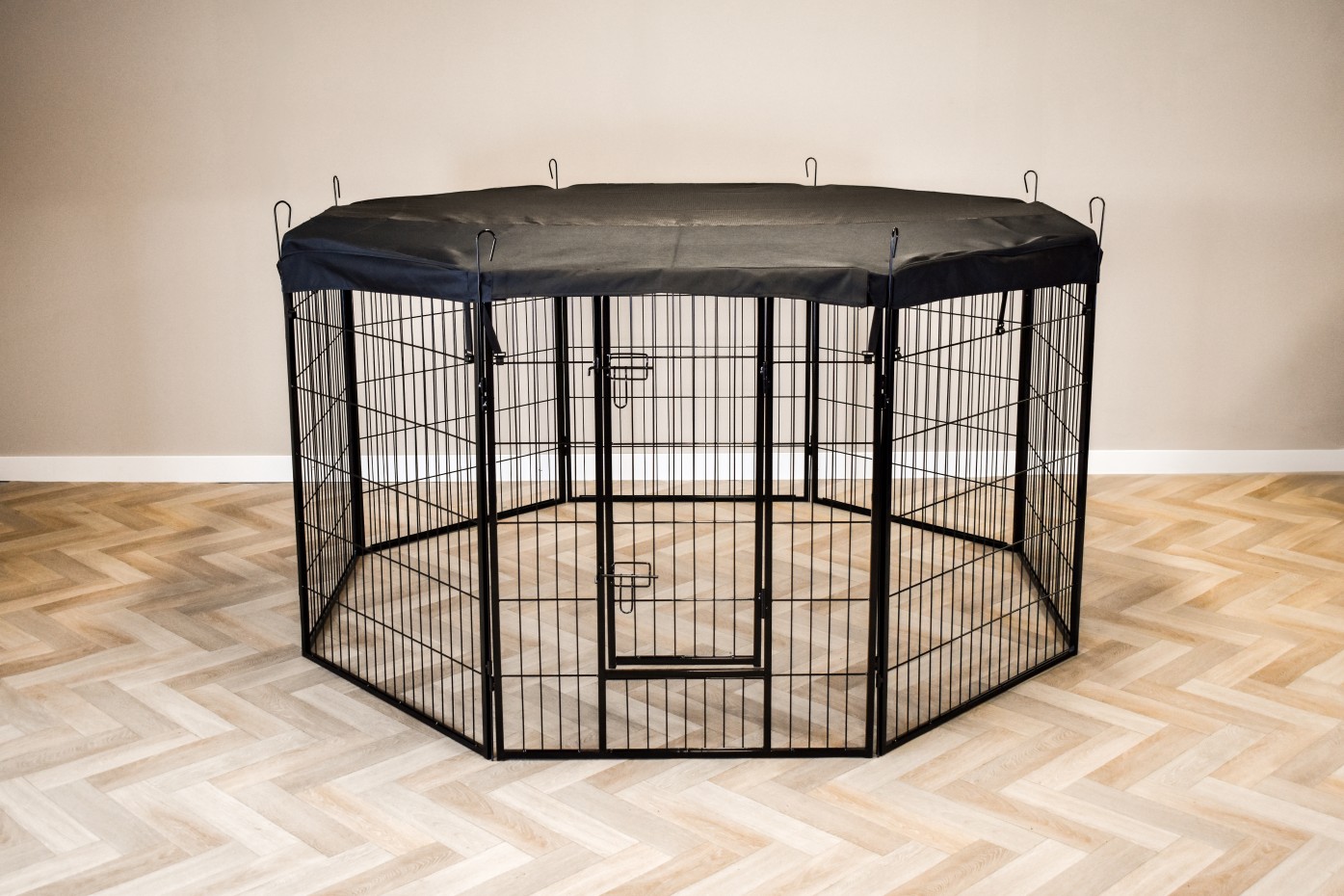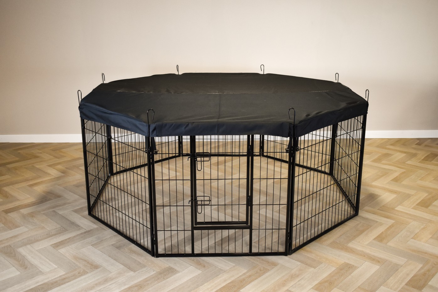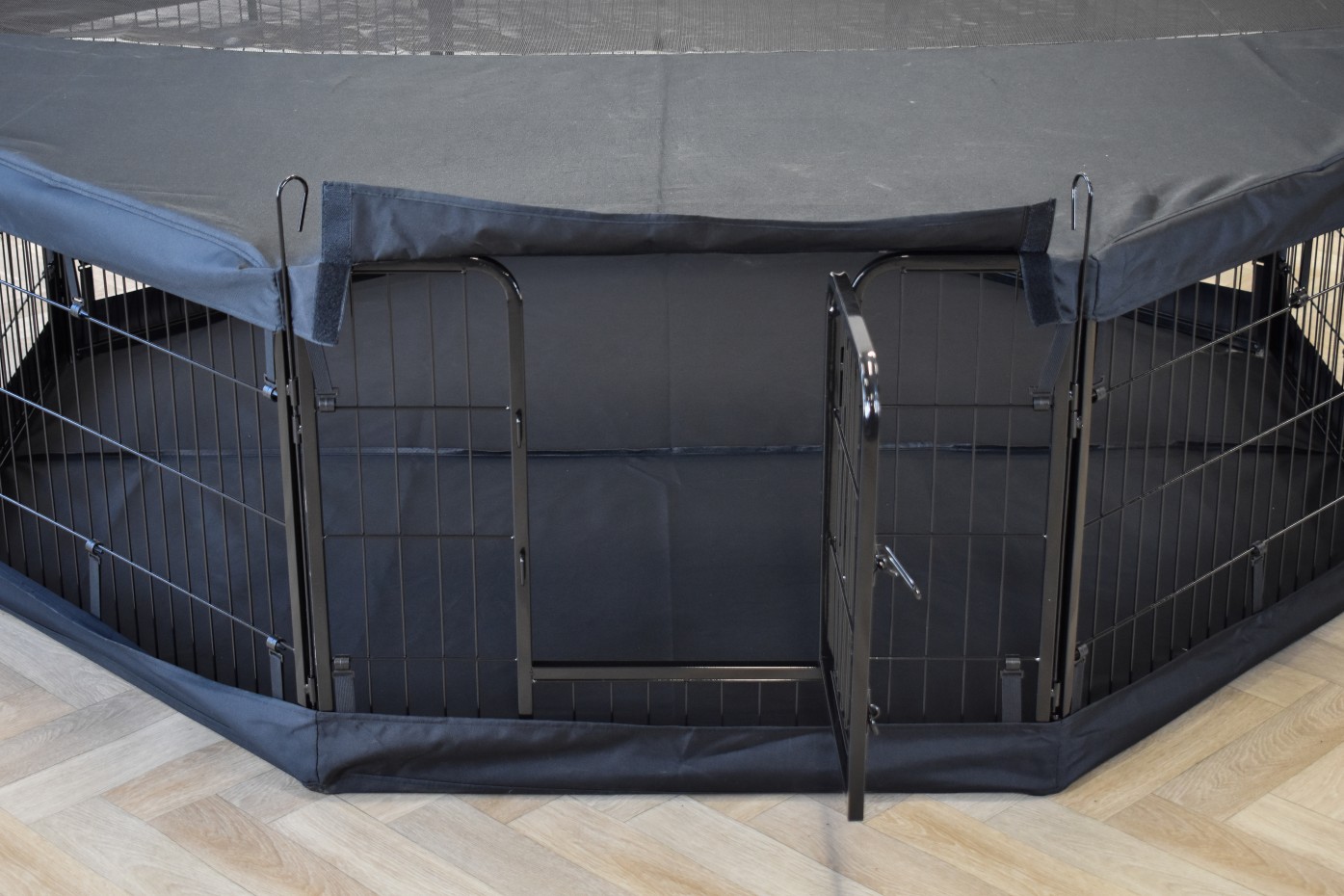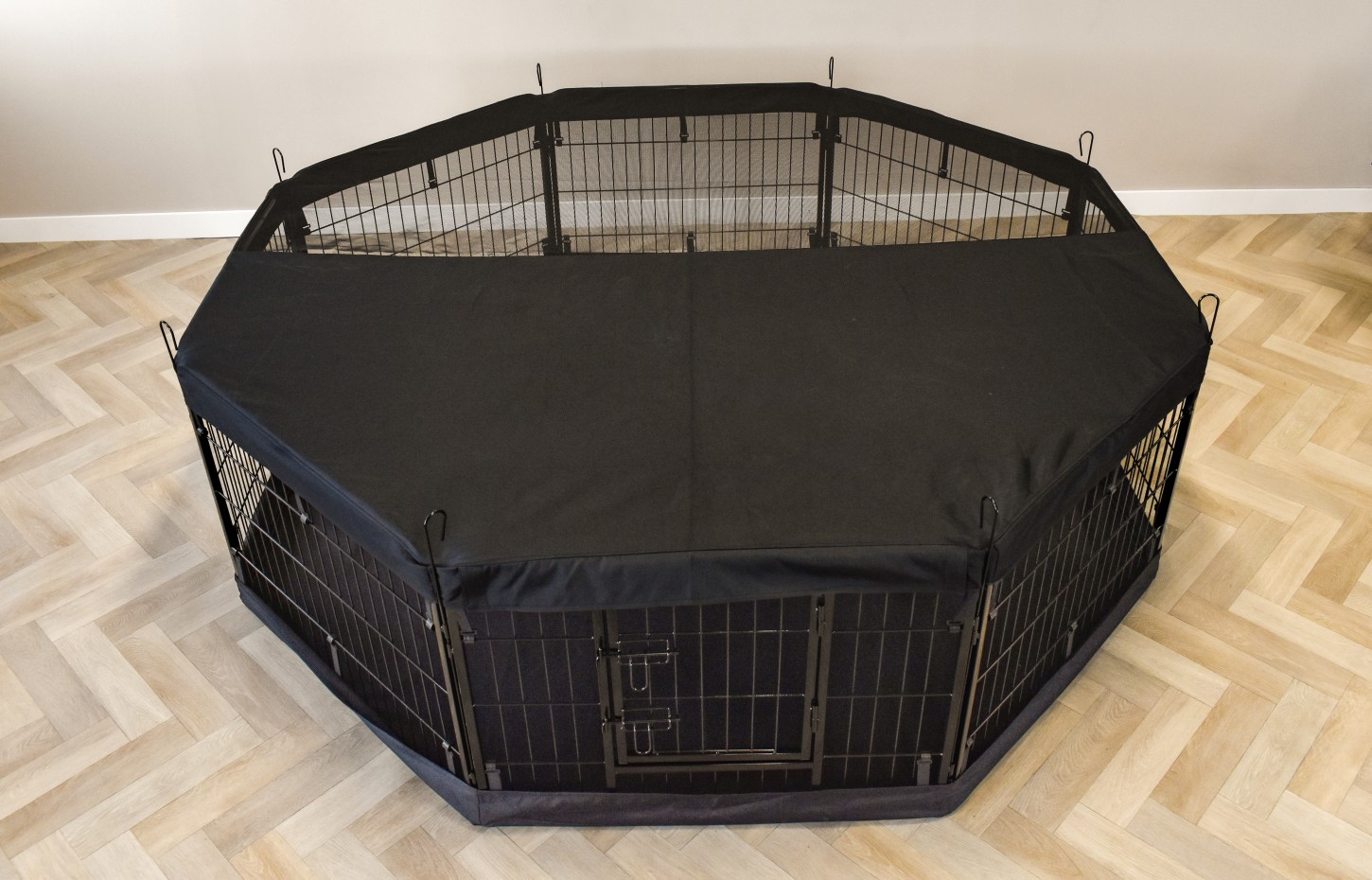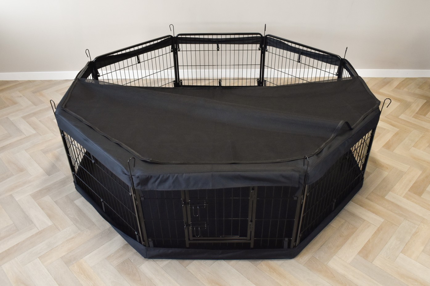 Le pare-soleil / filet de couverture de luxe pour l’enclos Octa est une protection simple mais efficace contre la lumière du soleil dans l’enclos et empêche les lapins ou les chiots de sauter dehors.