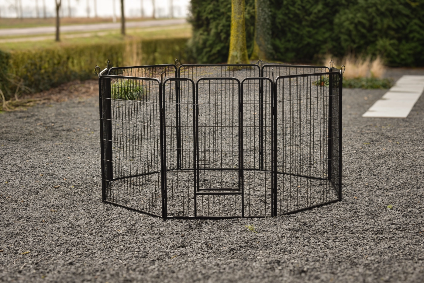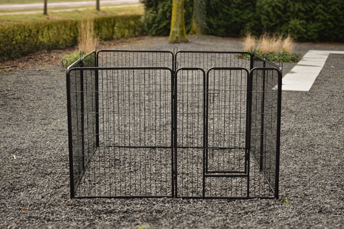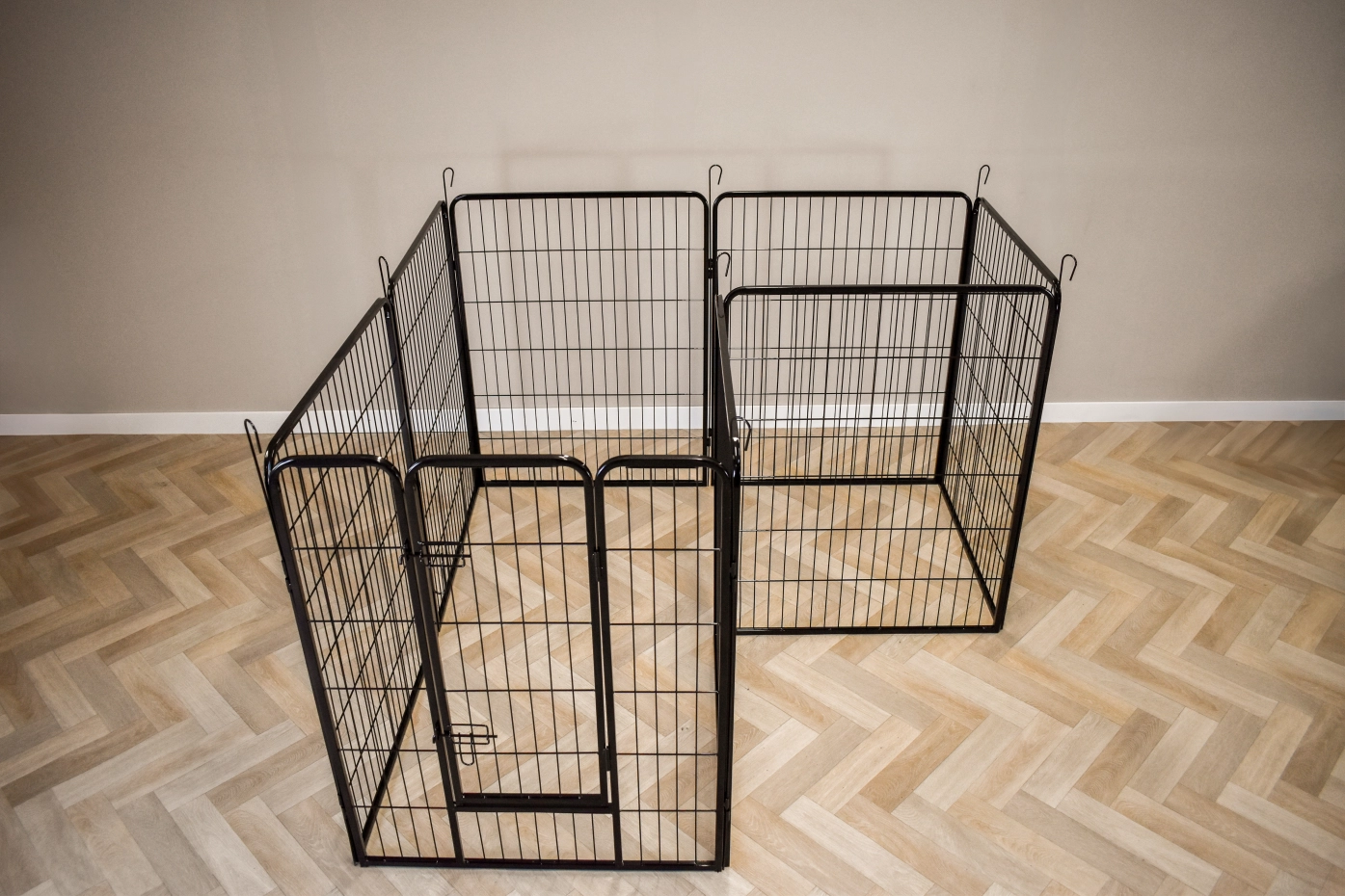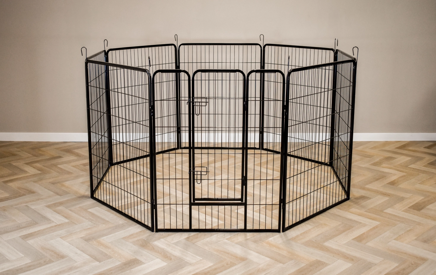 Parc enclos pour lapins Octa a un hauteur de 100cm. L'enclos est fabriquée en acier revêtu en poudre. Il consiste 8 panneax de ca. 79x100cm. L'enclos peut être utilisé pour lapins chiots et autres animaux.