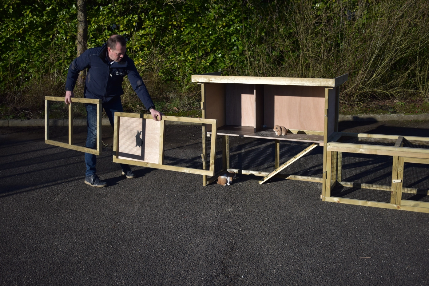 - Il est conseillé de placer le clapier / poulailler sur un ensemble de fondation afin qu’il soit plat et ferme