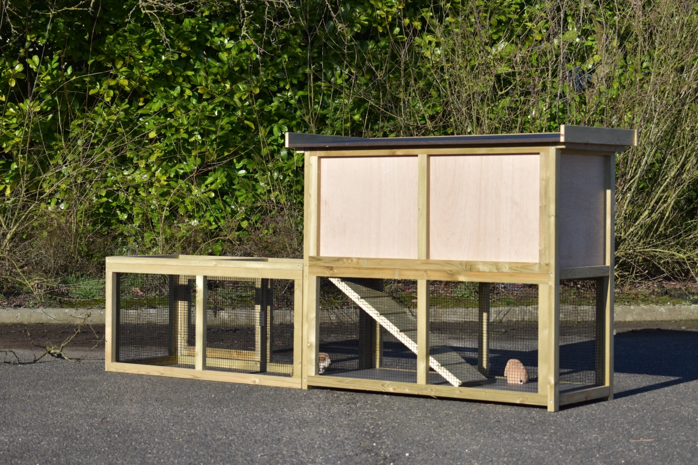 Clapier Axi Maxi Combi est un clapier spacieux et élégant avec un enclos d’extension assorti. L’Axi Maxi Combi est fabriqué en bois d’épicéa imprégné et en contreplaqué. Son principe simple le rend facile à utiliser et peu exigeant en entretien. Solide, simple et efficace sont les principes de base de ce clapier.