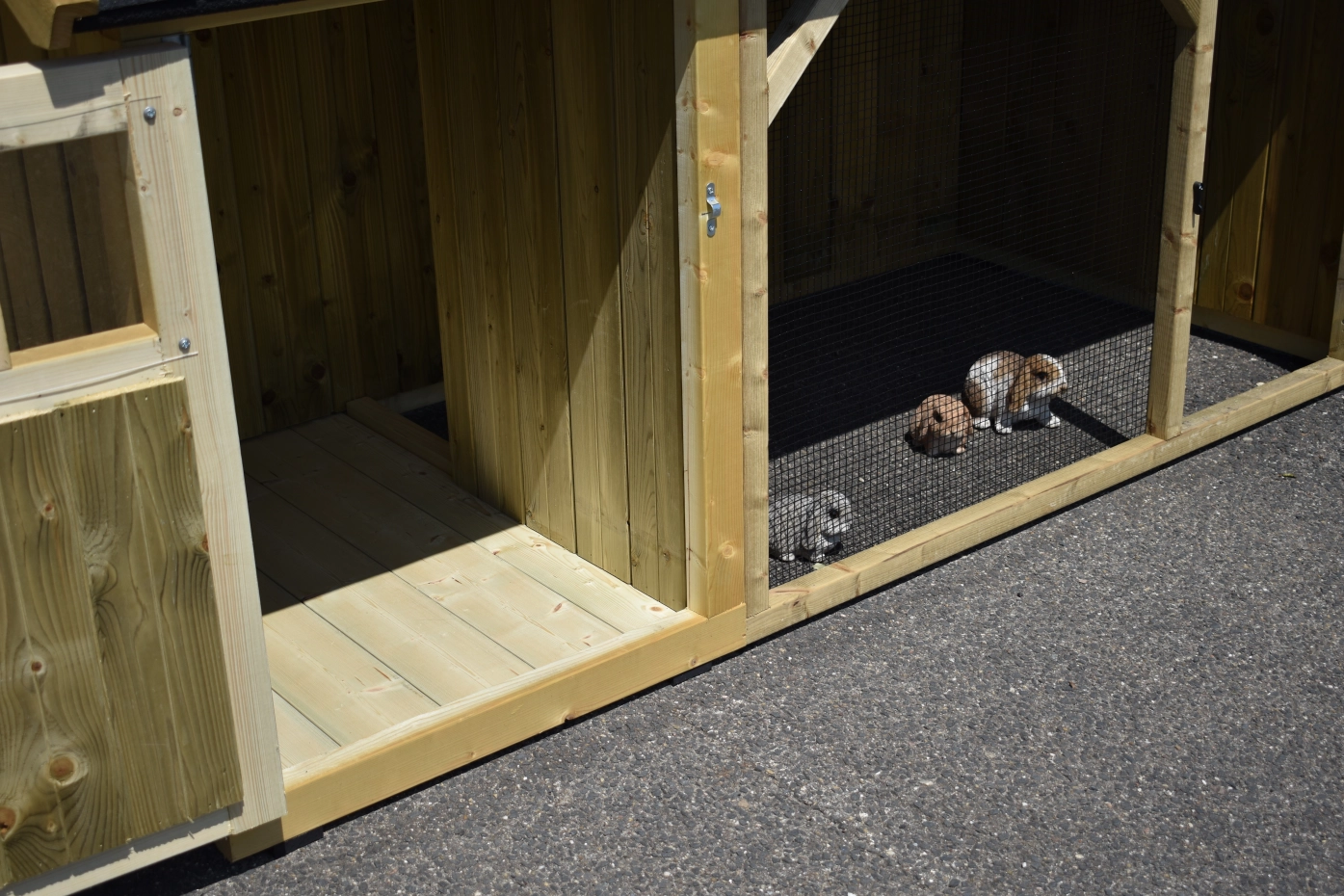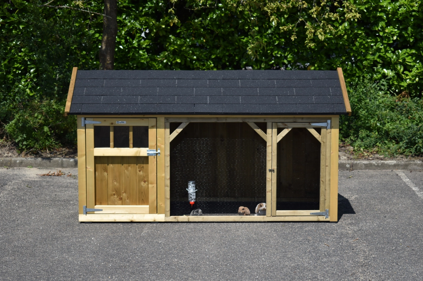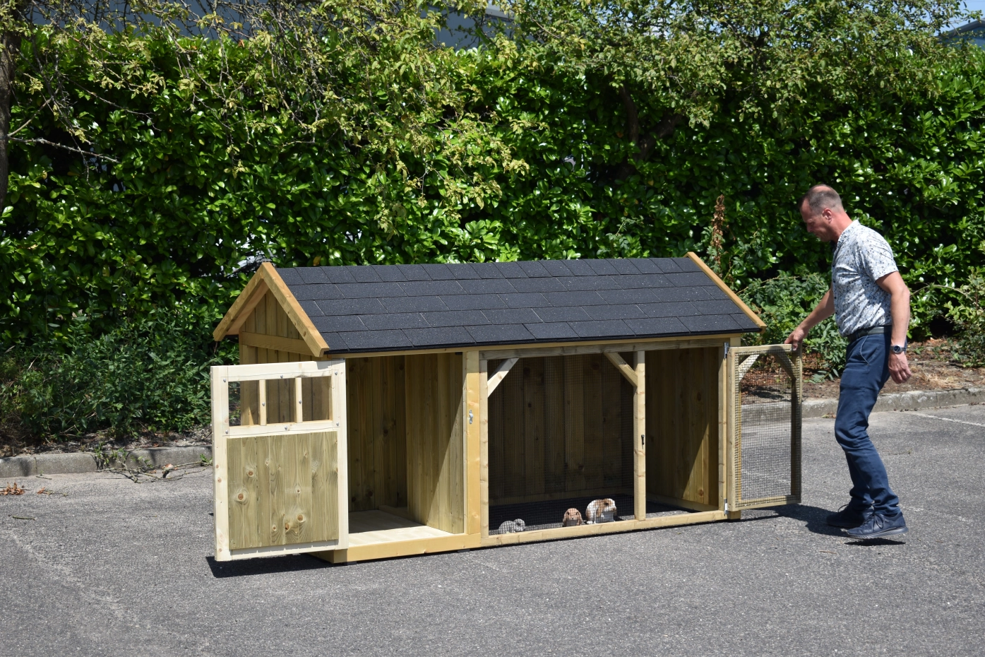Le clapier Belle 1 à toit pointu est un beau clapier robuste avec un grand espace de jeu. Comme cette version de Belle 1 n'a qu'une ouverture à l'avant, les lapins sont à l'abri du vent et des intempéries. Le clapier abrité est doté d'un plancher en bois imprégné et d'une porte spacieuse. Il est fabriqué en interne à partir de matériaux de bonne qualité. Il ne nécessite donc aucun entretien et est très robuste.