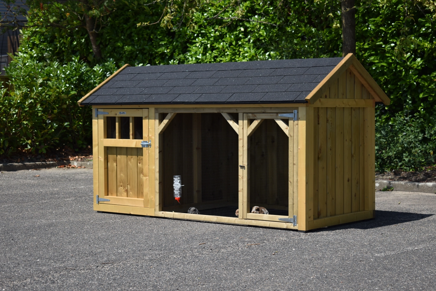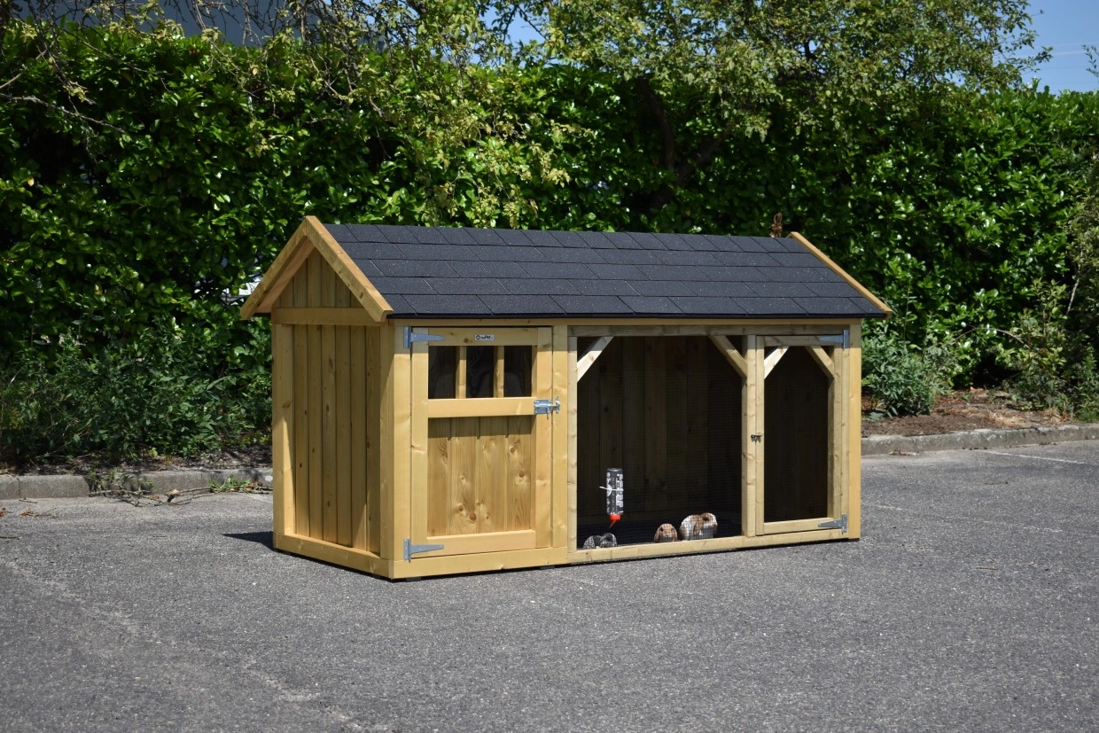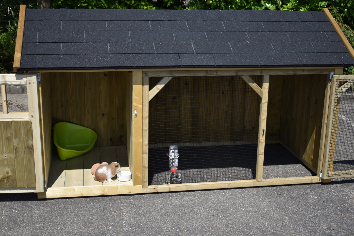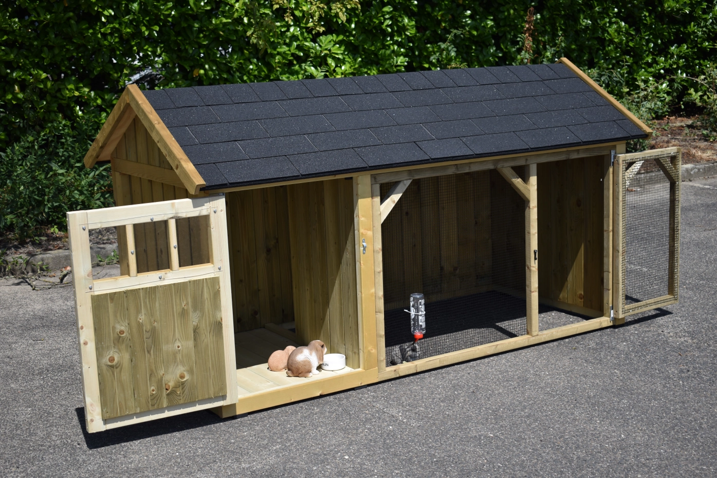 Le clapier Belle 1 à toit pointu est un beau clapier robuste avec un grand espace de jeu. Comme cette version de Belle 1 n'a qu'une ouverture à l'avant, les lapins sont à l'abri du vent et des intempéries. Le clapier abrité est doté d'un plancher en bois imprégné et d'une porte spacieuse. Il est fabriqué en interne à partir de matériaux de bonne qualité. Il ne nécessite donc aucun entretien et est très robuste.