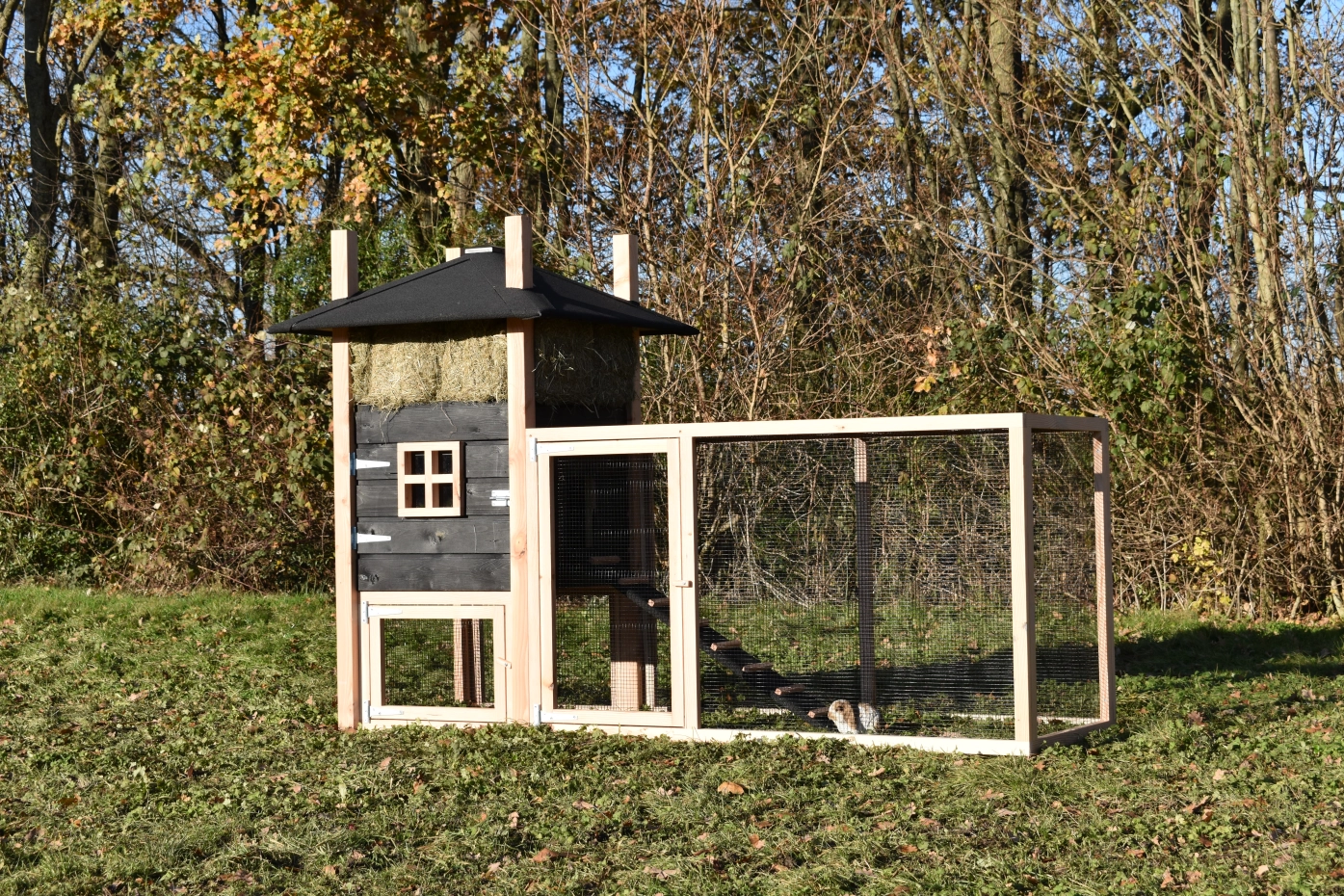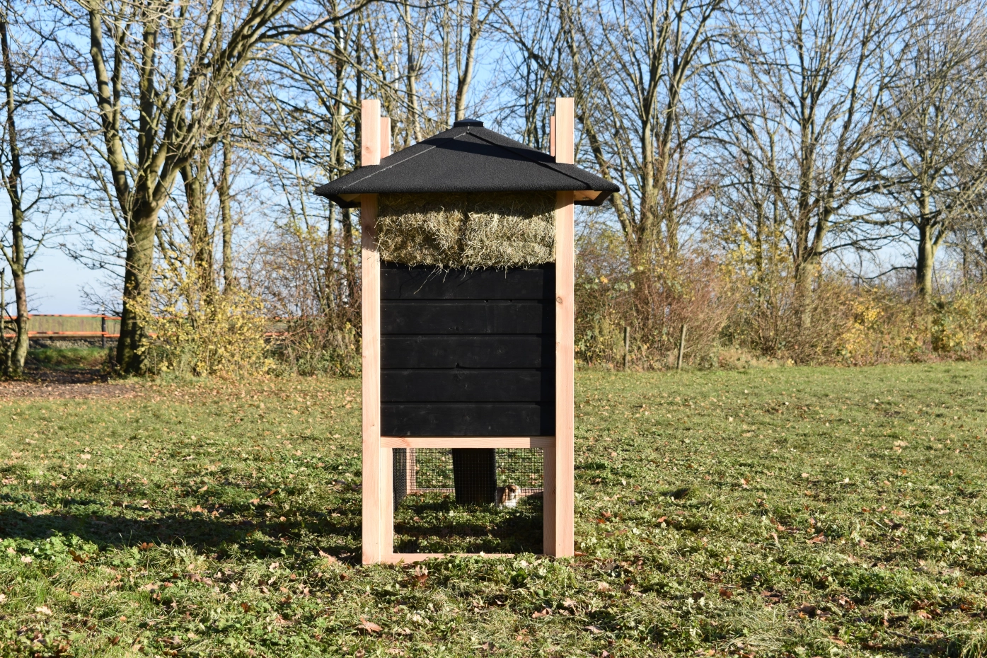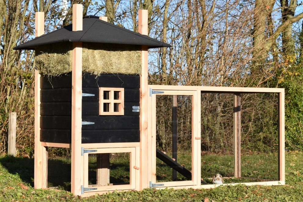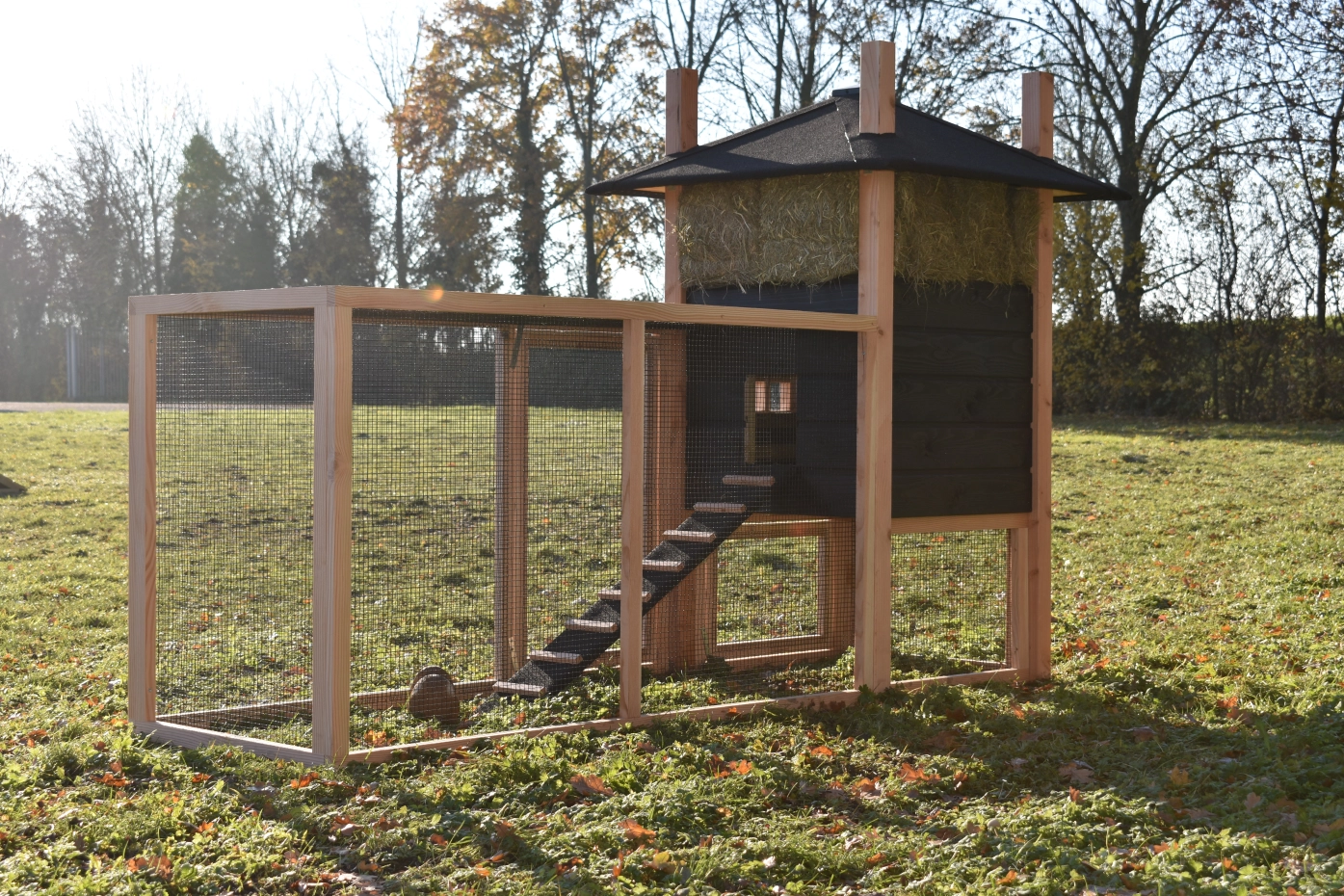 Clapier pour lapin botte de foin Rosalynn est un achat pour votre jardin. Vous pouvez commander du foin. A cause du grand enclos vos lapins a beaucoup d'espace. A cause de la grande porte vous pouvez nettoyer l'abri de nuit facilement. Le clapier est fabriquée en bois de Douglas et bois d'épicéa impregné. En bref, un clapier de meilleure qualité!