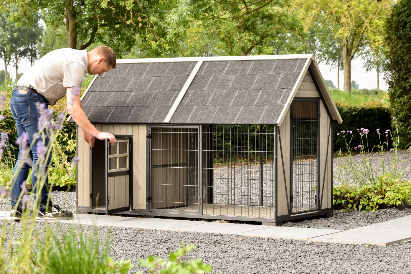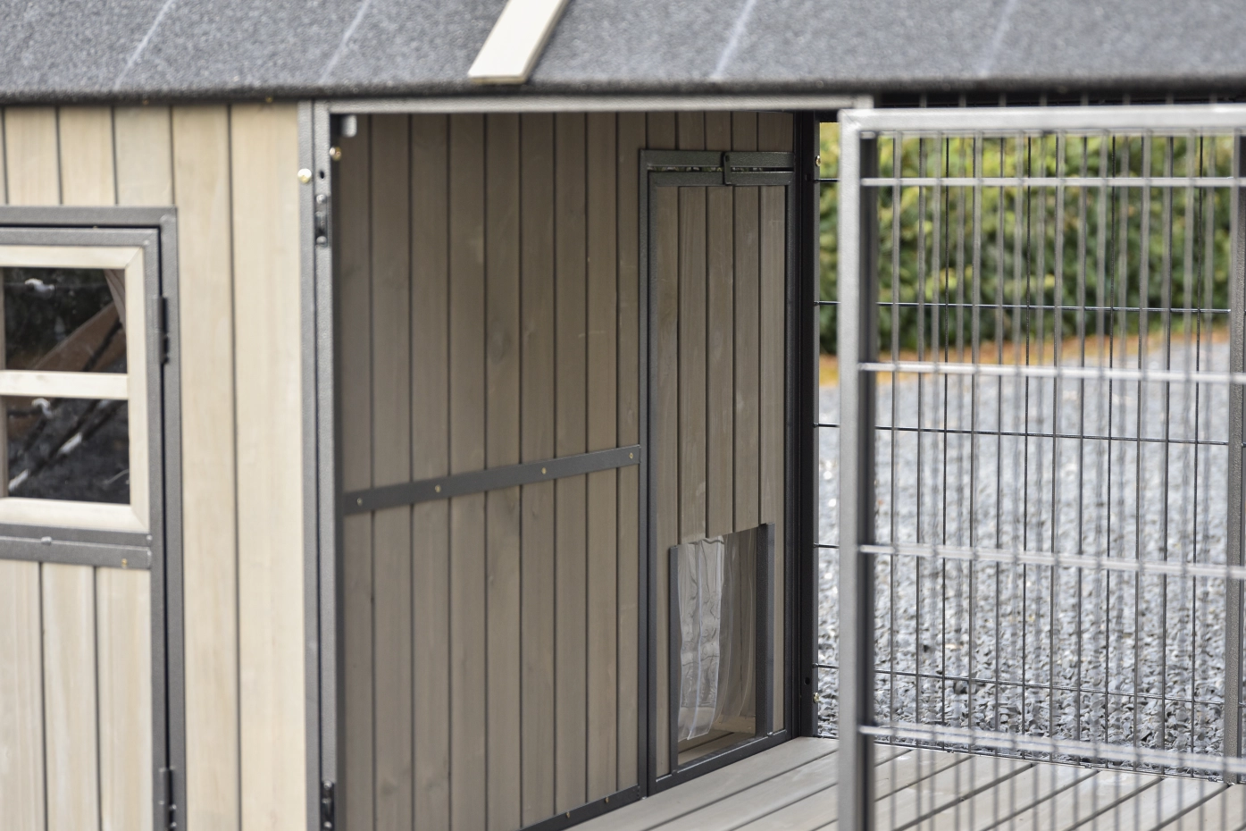 - Abri pour animaux en bois de pin avec cadre, en acier robuste et grillage noir