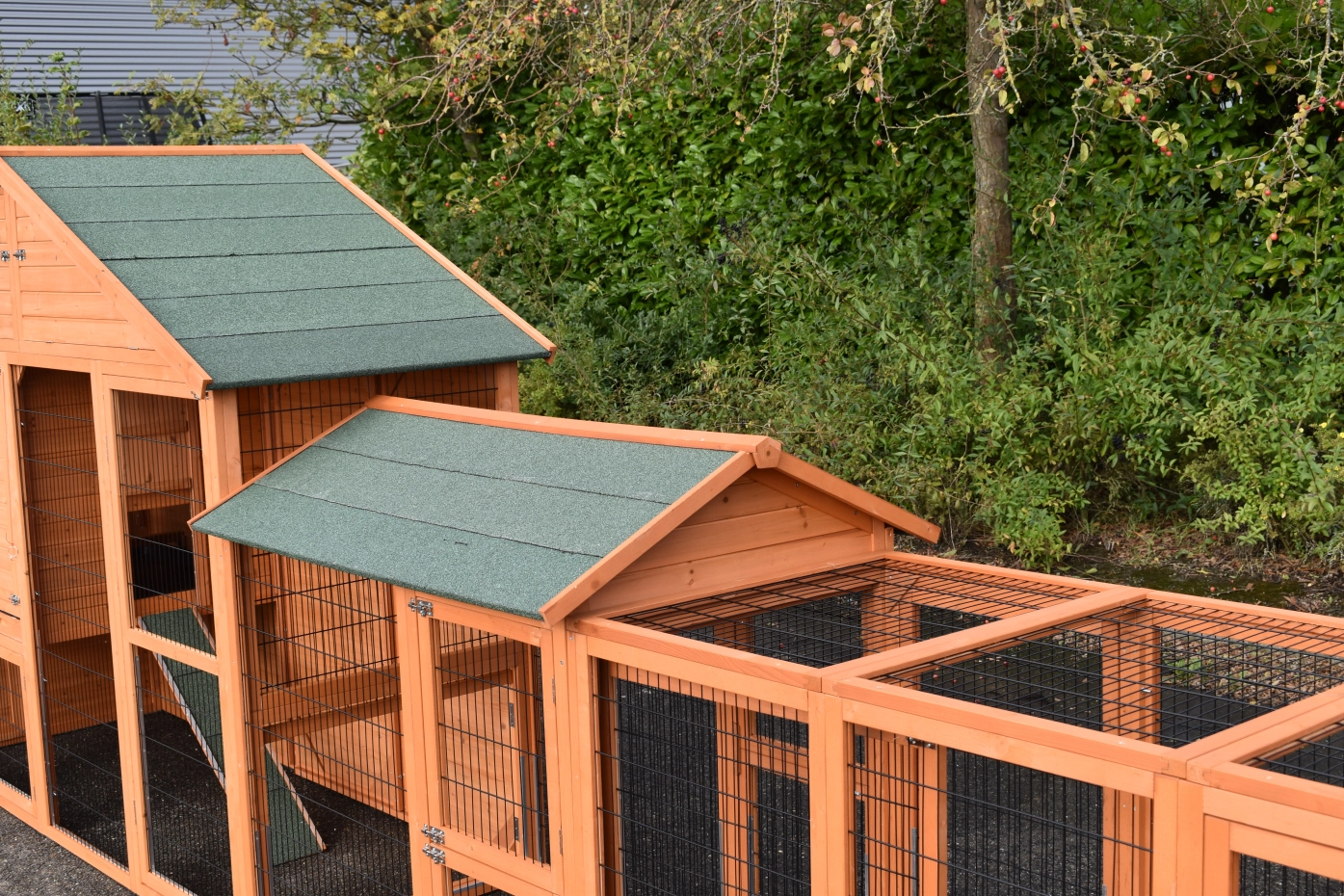 Le clapier Holiday Large avec les enclos Space Large et Functional est un clapier pratique, spacieux et de qualité. Convient pour 3 à 5 lapins. Avec tiroir pour un nettoyage facile, toit en vert pour la protection et un grenier pratique pour stocker la nourriture. Parfait pour un habitat confortable pour les lapins.