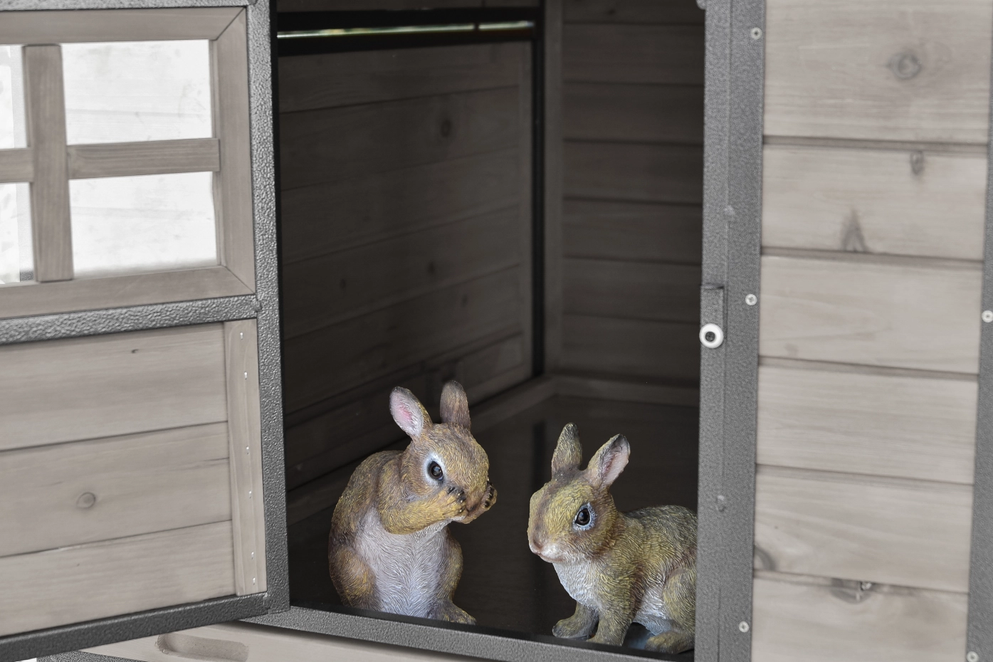 - Le clapier à lapin est équipé d'un toit en plastique