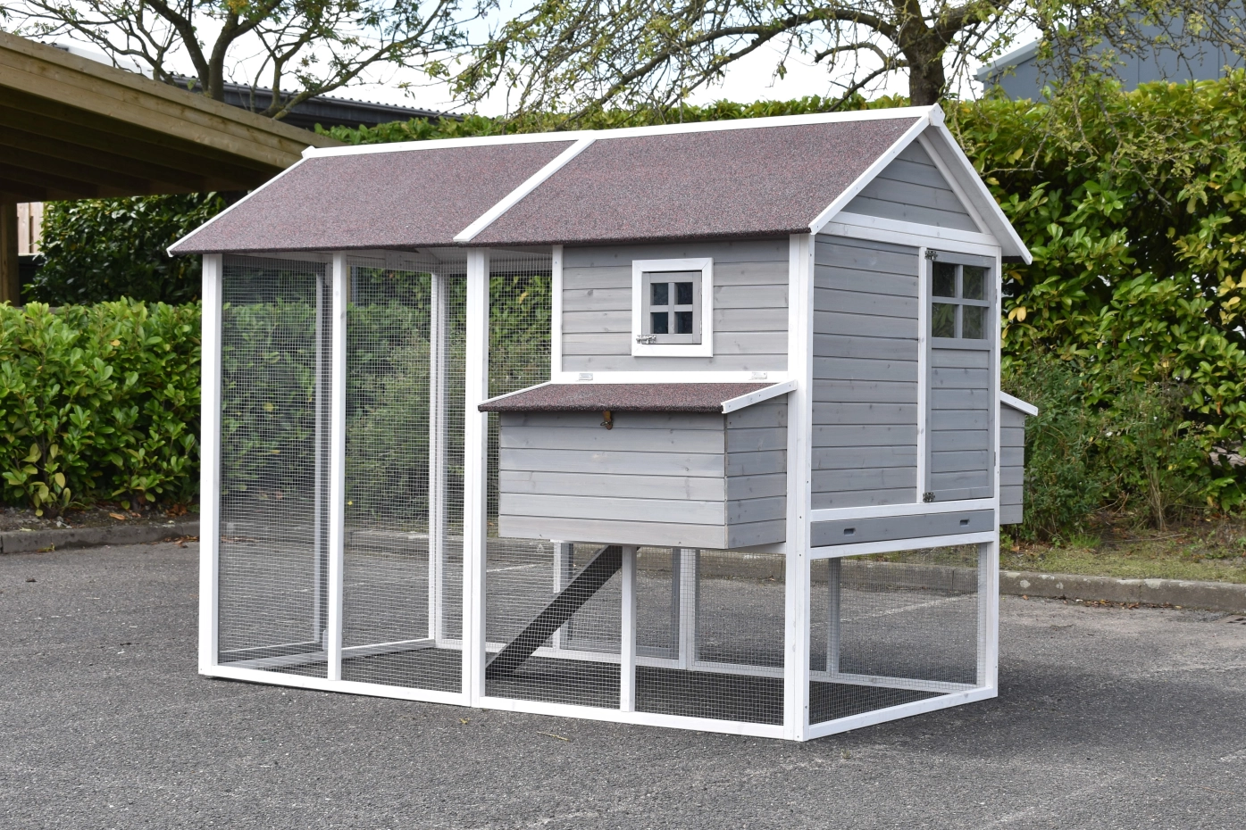Clapier pour lapin Royalty est un beau, grand clapier. Le clapier a un grand abri de nuit et un grand enclos. Le max. hauteur est 183cm. Le clapier pour lapin est approprié pour 4 à 8 lapins. Le clapier a 2 pondoirs. Au-dessous de l'abri de nuit est une tiroir, pour un nettoyage facile. L'abri de nuit est équipée avec une grande porte.