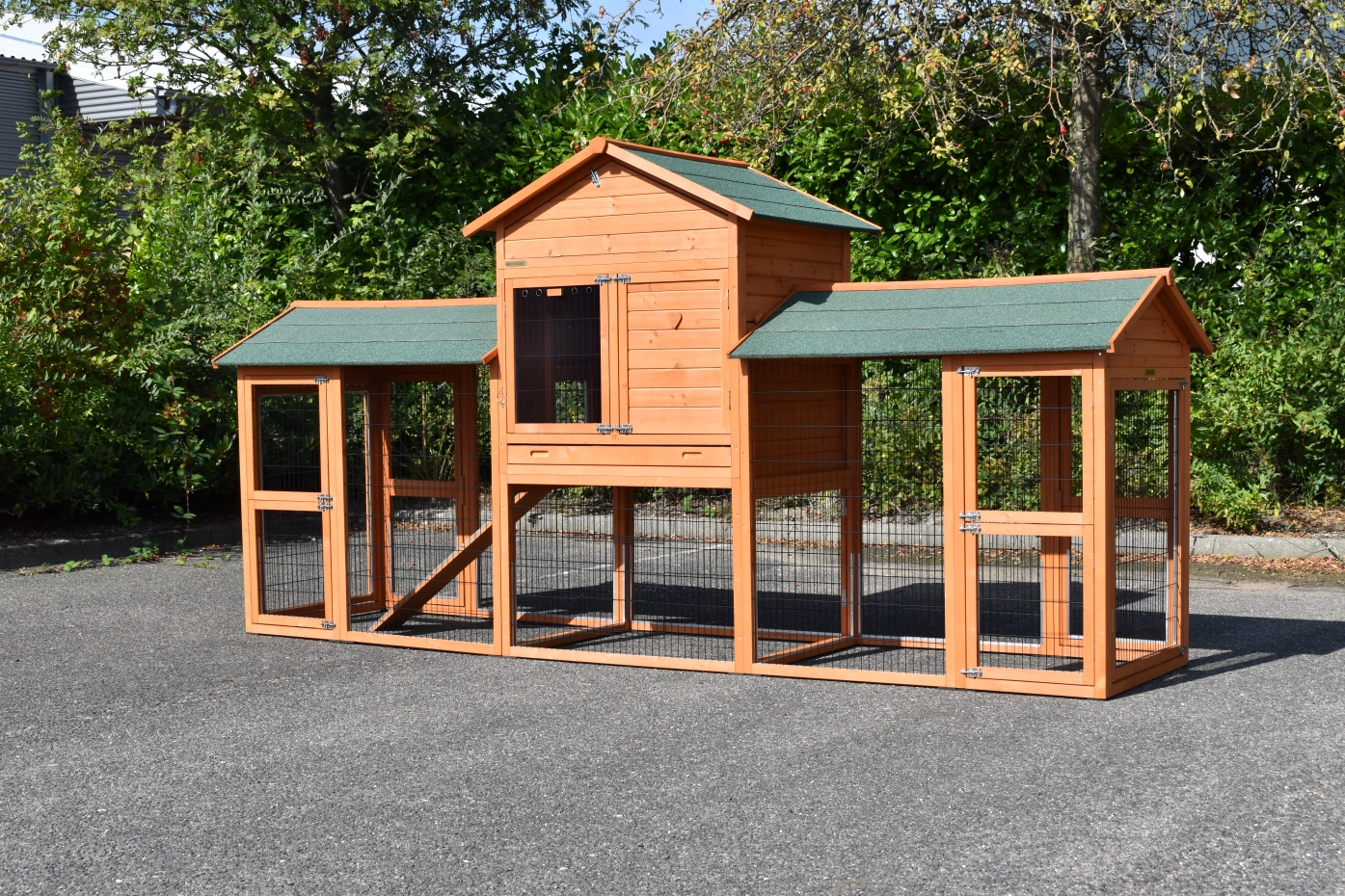 Le bois utilisé pour le loft est un produit naturel unique qu'a été produit dans le pays d'origine, après une sélection rigoureuse, dans une manière traditionelle. C'est caractéristique et unique à tous égards. Ce produit en bois a été un traitement manuel. Aucune pièce de bois ne possède la même forme, la même structure ou la même couleur, de sorte que les nuances de couleur sont inévitables, même dans un morceau de bois. Les fissures dues au vent, les craquelures, les imperfections et la présence de gros et de petits noeuds témoignent de leur origine et de leurs années de croissance. Les bosses sont généralement mises à jour manuellement avec du bois. Grâce à leur utilisation et à l’influence de la lumière, les nouveaux maisons pour animaux auront une couleur plus chaude au fil du temps. Les différences de couleur au modèle d'exposition sont donc possibles. L'enclos pour animaux est munie d'un fini antitache dans les couleurs comme sur la photo. Vous devez encore décaper le bois pour éviter les moisissures et la pourriture. Vous pouvez facilement commander des taches directement.