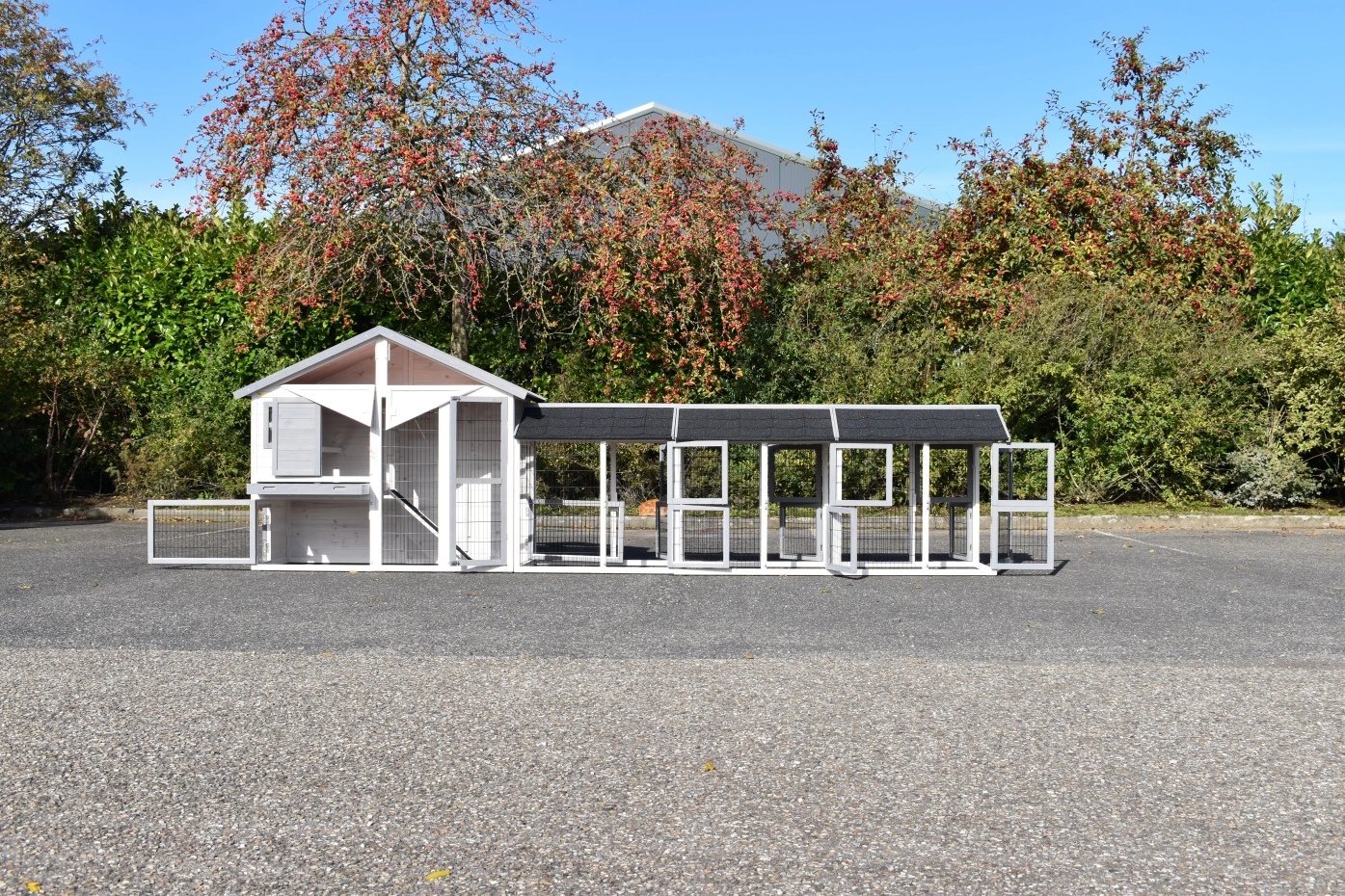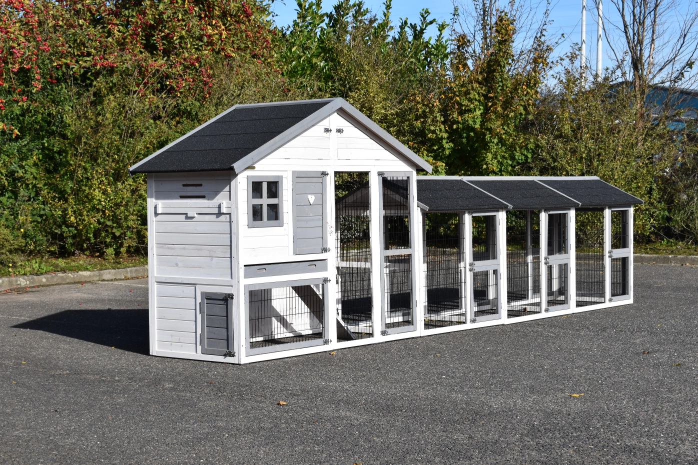 Le clapier pour lapin Holiday Medium avec 3 enclos supplémentaires offre à vos lapins beaucoup d'espace avec élégance. Il dispose d'un espace de repos verrouillable et d'un grenier pratique.