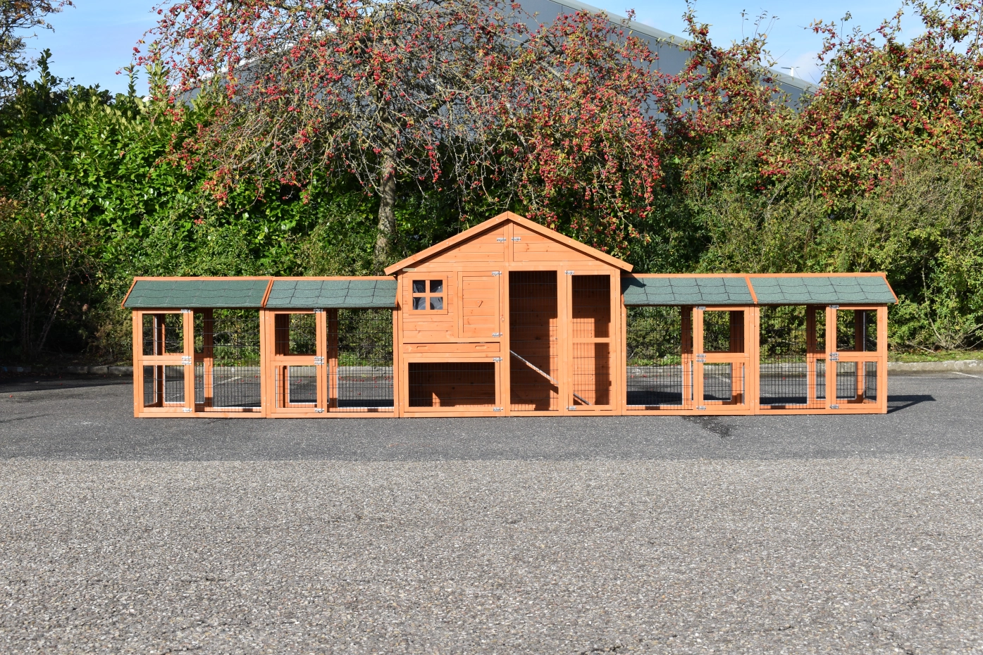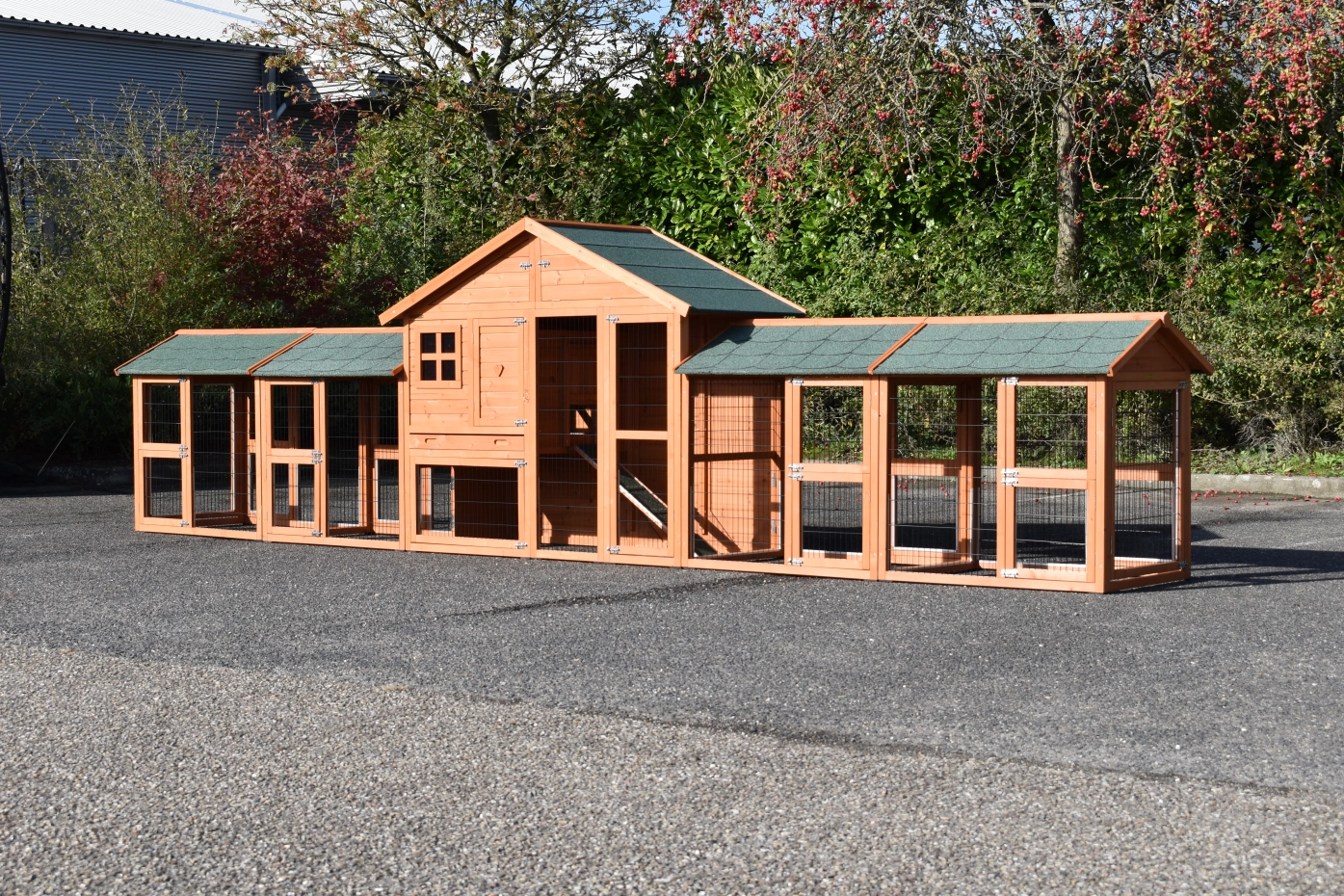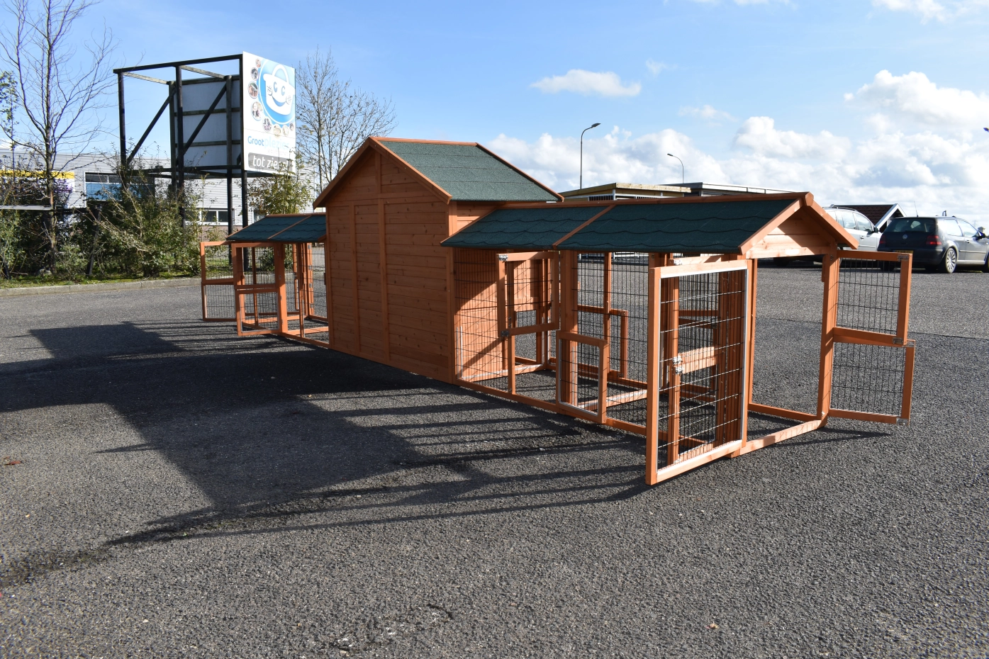 Clapier pour lapin Holiday Medium est étendue avec 4 enclos additive et a un grand abri de nuit. L'abri de nuit du clapier pour lapin Holiday Medium est approprié pour 2 à 4 lapins. Le clapier est fabriquée en bois de pin et les toits ont équipée avec toit bitumé vert.