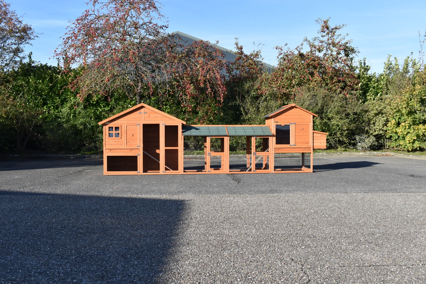 L'ensemble de clapier pour lapins Holiday Medium avec enclos de liaison et l'enclos pour animaux Prestige Medium avec nid est une combinaison très pratique et esthétique de clapiers pour lapins avec 2 espaces de repos et un grand enclos. Cette combinaison est adaptée pour loger de grands lapins tels que les béliers français, les géants des Flandres, d'autres grandes races ou un groupe de lapins. Cette grande combinaison convient pour 4-8 lapins, selon la race.