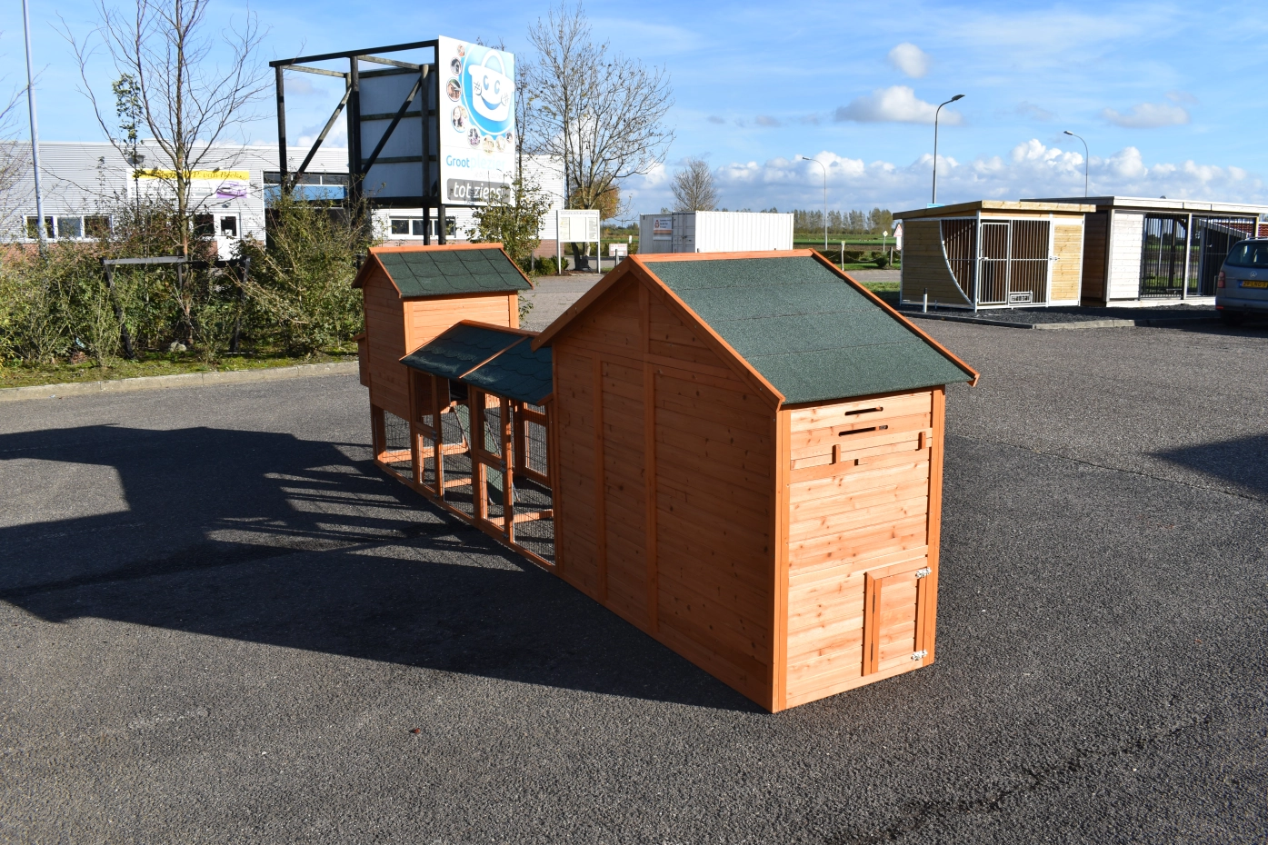 Le bois utilisé pour le loft est un produit naturel unique qu'a été produit dans le pays d'origine, après une sélection rigoureuse, dans une manière traditionelle. C'est caractéristique et unique à tous égards. Ce produit en bois a été un traitement manuel. Aucune pièce de bois ne possède la même forme, la même structure ou la même couleur, de sorte que les nuances de couleur sont inévitables, même dans un morceau de bois. Les fissures dues au vent, les craquelures, les imperfections et la présence de gros et de petits noeuds témoignent de leur origine et de leurs années de croissance. Les bosses sont généralement mises à jour manuellement avec du bois. Grâce à leur utilisation et à l’influence de la lumière, les nouveaux maisons pour animaux auront une couleur plus chaude au fil du temps. Les différences de couleur au modèle d'exposition sont donc possibles. L'enclos pour animaux est munie d'un fini antitache dans les couleurs comme sur la photo. Vous devez encore décaper le bois pour éviter les moisissures et la pourriture. Vous pouvez facilement commander des taches directement.