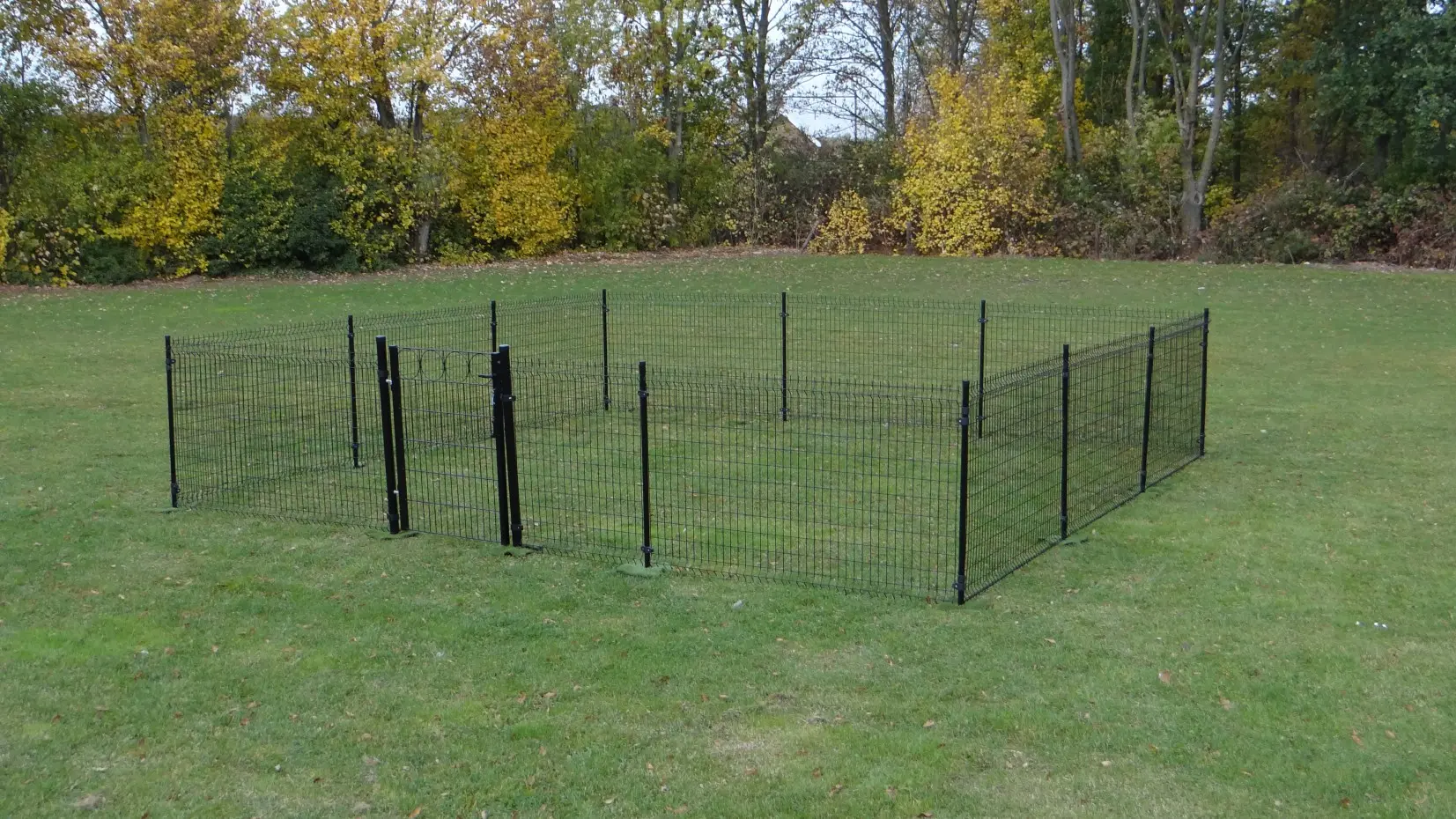 Clôtures pour poules: 36 m2 clôture stabile. Avec portillon pour une accessibilité optimale. La clôture est approprié pour une surface douce. Les pôles sont 1,70 m. de long et ils doivent être placés 45 cm à la terre.