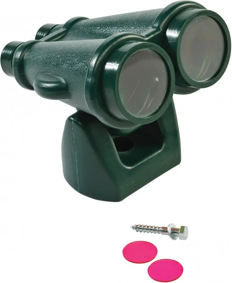 Une amusante paire de jumelles vertes pour l’aire de jeu. Un excellent accessoire pour encore plus de plaisir et d'imagination. Comprend 2 lentilles jaunes et 2 roses. Disponible en plusieurs couleurs.