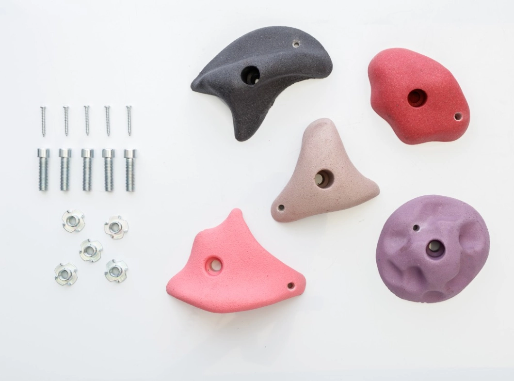 Créez un mur d’escalade sûr et esthétique grâce à cet ensemble de 5 prises d’escalade de haute qualité, chacune mesurant entre 100 et 120 mm de diamètre. Fabriquées en résine synthétique résistante avec des bagues métalliques intégrées, elles offrent une excellente prise. L’ensemble comprend des boulons cylindriques (M10), des écrous à frapper et des vis. Grâce aux deux points de fixation, les prises restent stables et ne tournent pas. Idéal pour une utilisation sur des structures de jeux.