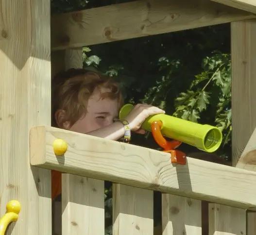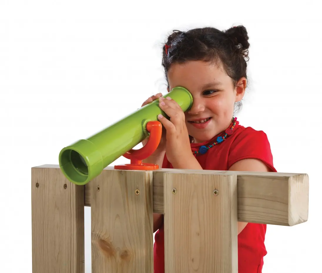 Amusant télescope pour votre aire de jeux. Ce télescope enrichit l’aire de jeux et ajoute une touche d’imagination à chaque enfant. Le télescope est facile à monter et pivotant dans toutes les directions.