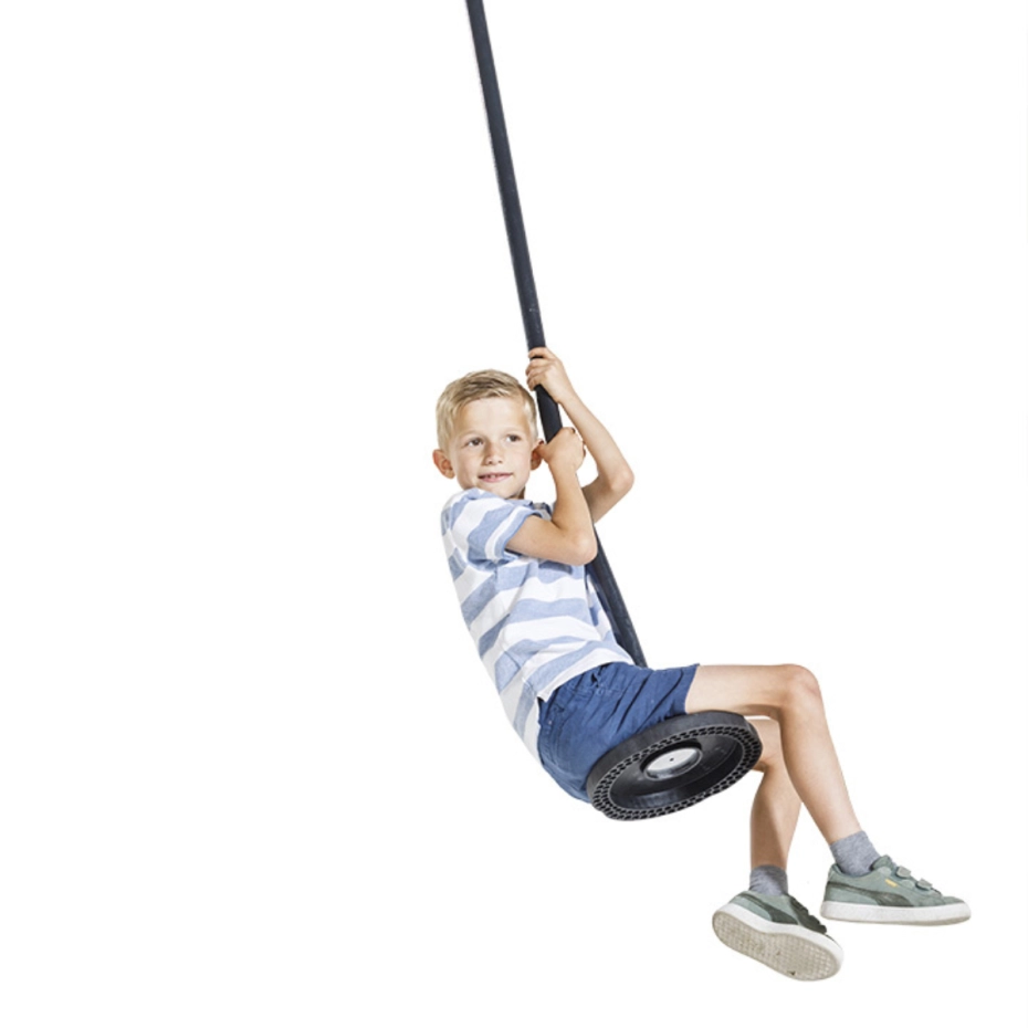 La balancelle à disque en caoutchouc « Curve » peut être utilisée seule ou avec un chariot roulant. Le siège en TPE moulé par injection intègre une plaque métallique de 3 mm. Elle est fournie avec une chaîne en acier galvanisé à chaud de 6 mm, dotée d’une gaine de protection en caoutchouc et d’un maillon en D. La balancelle et la chaîne sont disponibles séparément.