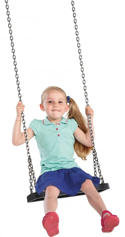 Le siège de balançoire Curve est un siège robuste en caoutchouc noir avec une plaque d'insertion en aluminium. Ce siège de balançoire convient parfaitement aux enfants, mais aussi aux adultes. Suspension avec chaînes galvanisées pour un plaisir de balançoire professionnel.