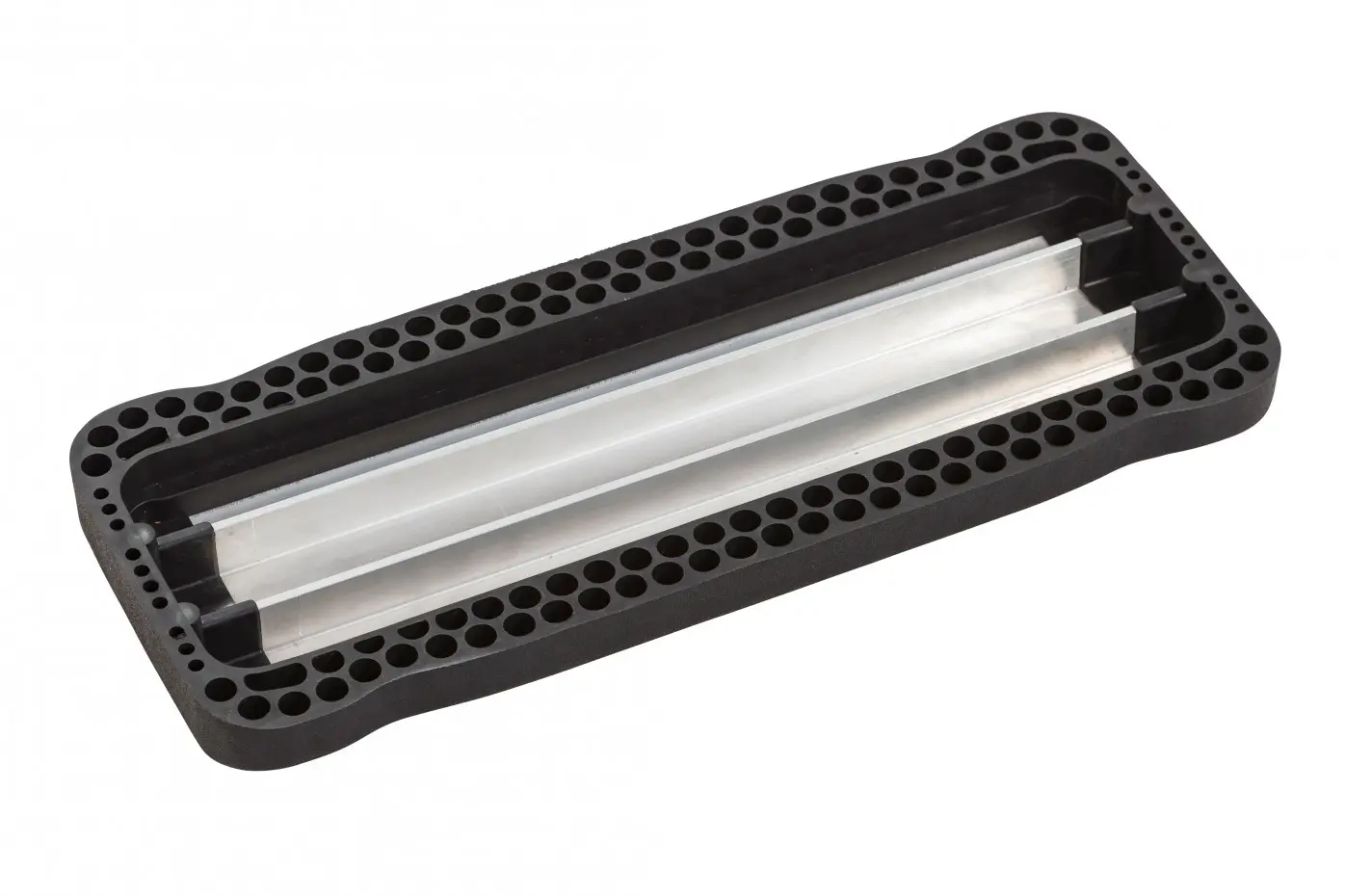 Caoutchouc noir • plaque d'alu • chaîne galvanisée