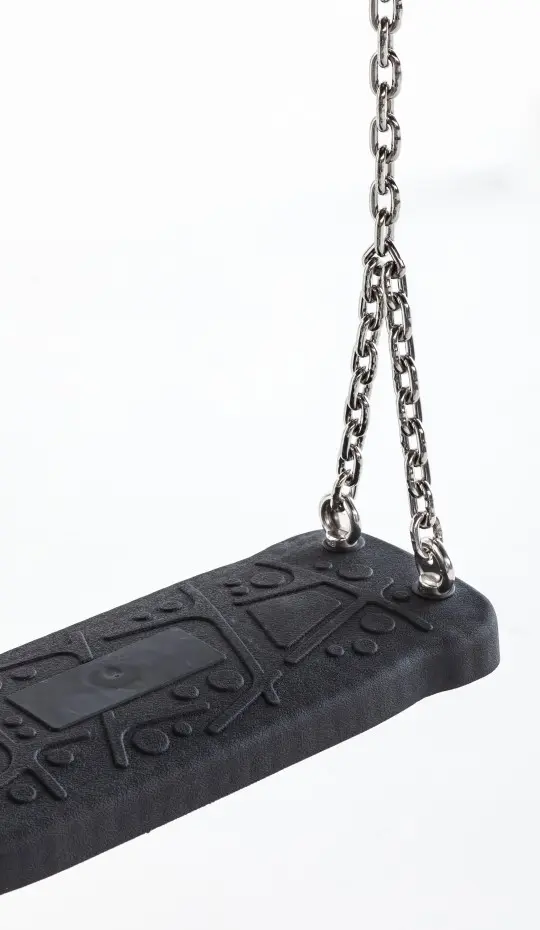Le siège de balançoire Curve est robuste, en caoutchouc noir avec une plaque en aluminium. Le siège est convient aux enfants et aux adultes. Capacité de charge maximale de 100 kg. Suspension avec chaînes en acier inoxydable pour un plaisir de balançoire professionnel.