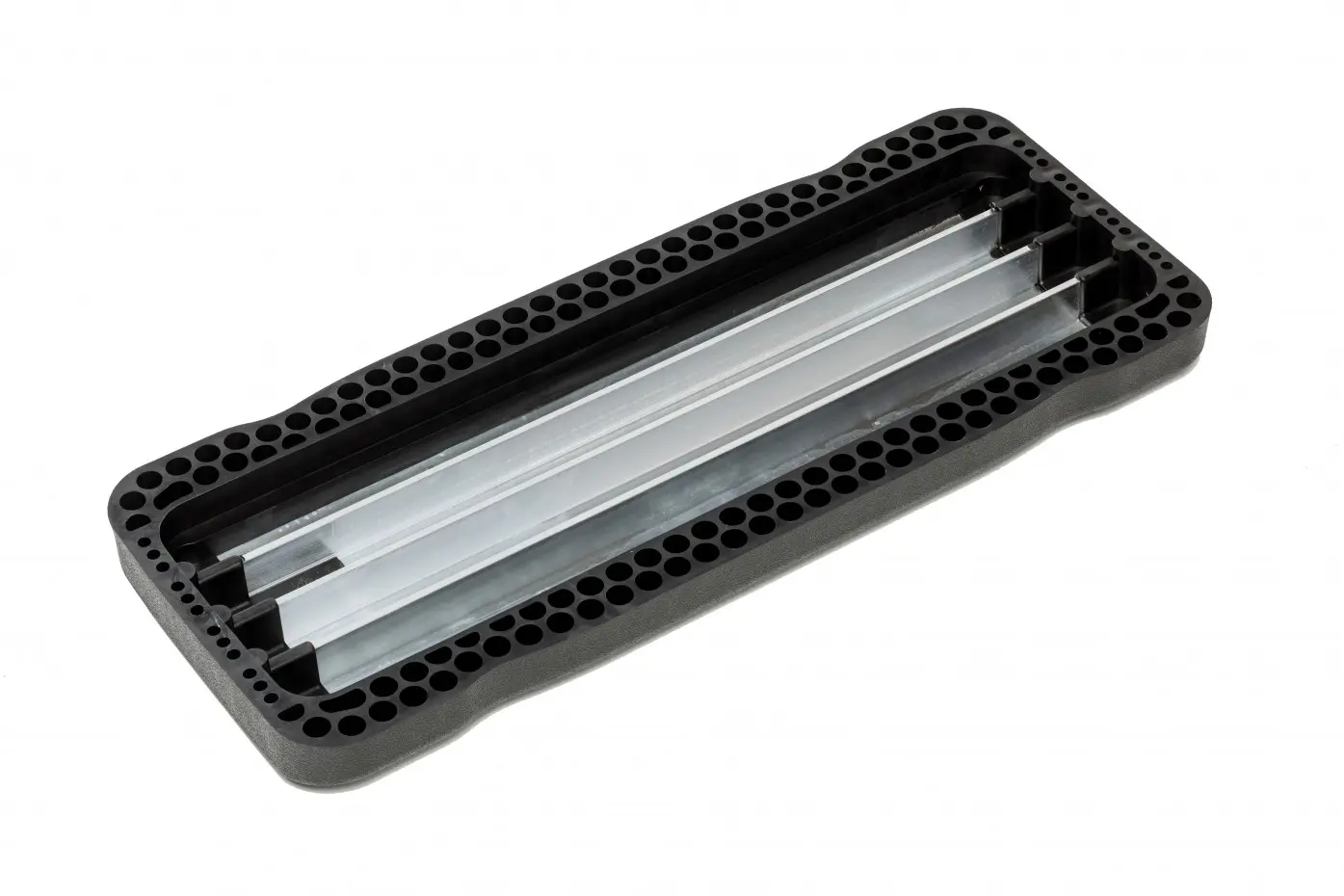 caoutchouc noir • plaque d'alu • chaîne en acier inoxydable