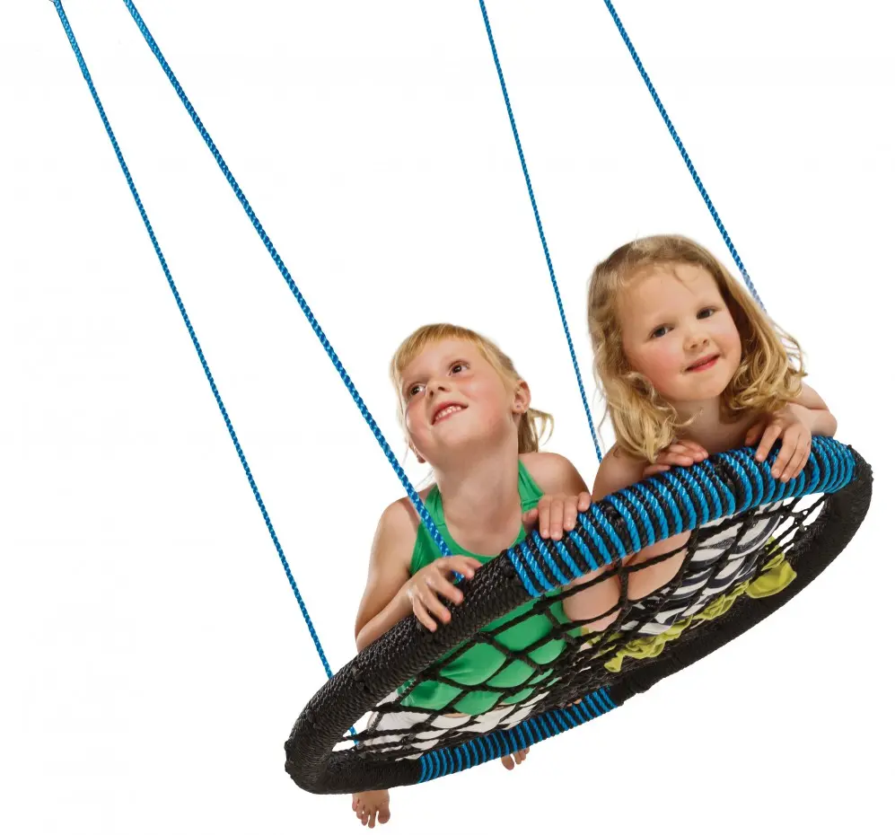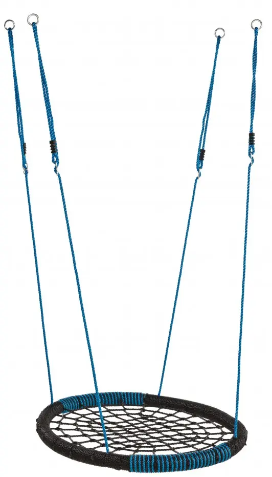 La balançoire nid Oval noir/bleu offre un grand plaisir ! La balançoire nid ovale, avec des dimensions d'environ 108x84 cm, convient à plusieurs enfants en même temps. La balançoire nid Oval Verte possède 4 œillets de suspension. Pour une expérience de balancement optimale, l'Oval peut être accrochée à notre crochet de balançoire pour suspension à 4 points. Il est également possible d'utiliser simplement 2 crochets de balançoire standard.