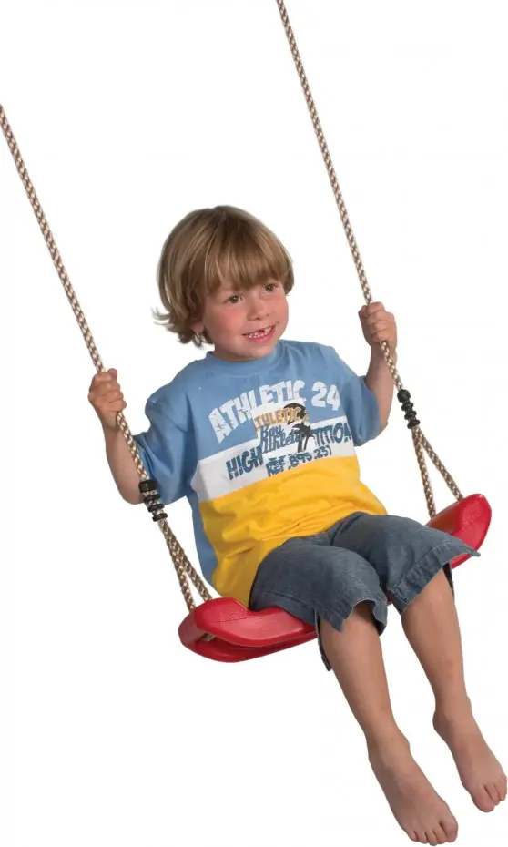 Siège de balançoire en plastique rouge avec corde en PP. Le siège est en plastique soufflé. Ce siège de balançoire est populaire pour une bonne raison. Le rouge est une couleur prisée des enfants.