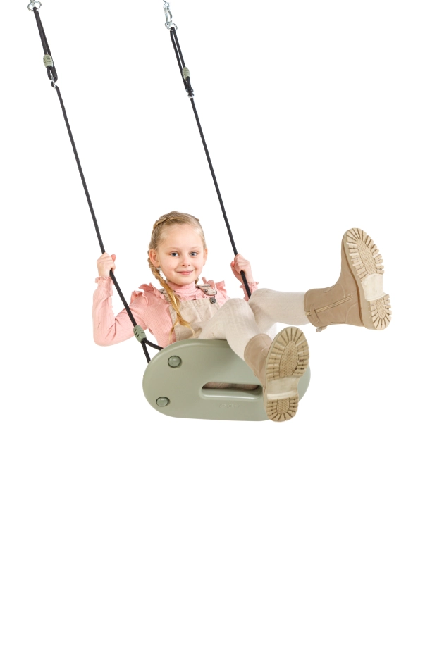 Siège de balançoire ergonomique XXL dans de douces teintes pastel vert. Confortable et sûr, ce siège de balançoire est fabriqué en HDPE soufflé durable et mesure 45 x 24 x 3,5 cm. Livré avec des cordes tressées noires de 10 mm d'épaisseur, agréables pour les doigts. Réglable en hauteur, adapté aux balançoires jusqu'à 250 cm. Idéal pour des heures de plaisir à se balancer !