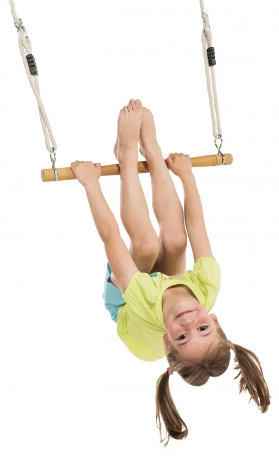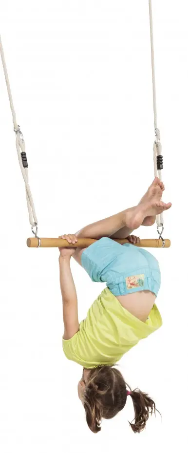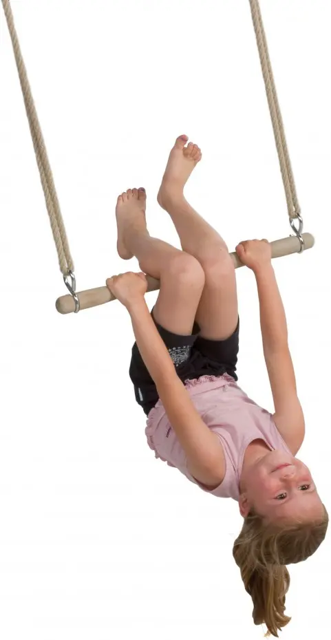 Libérez vos talents d'acrobate avec ce trapèze ergonomique ! Trapèze en bois modèle Ergonomic, équipé d'une corde PH adaptée aux enfants.