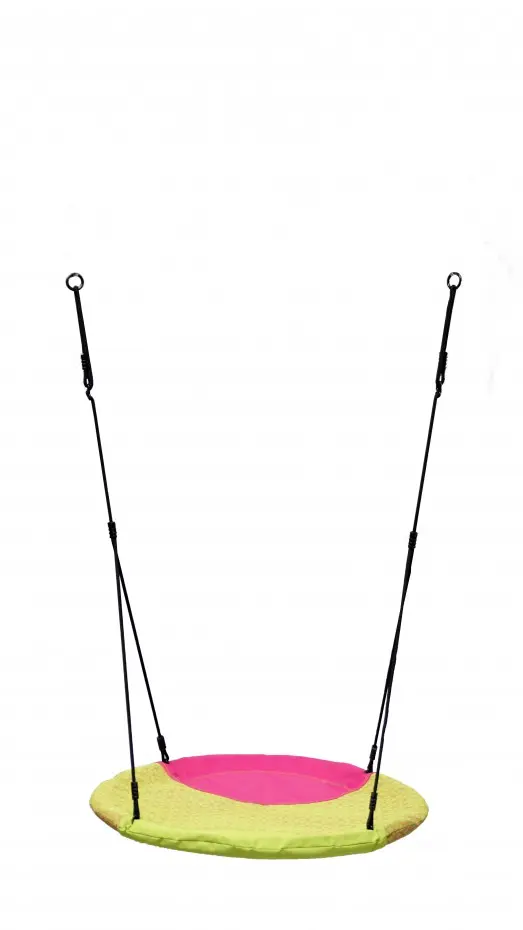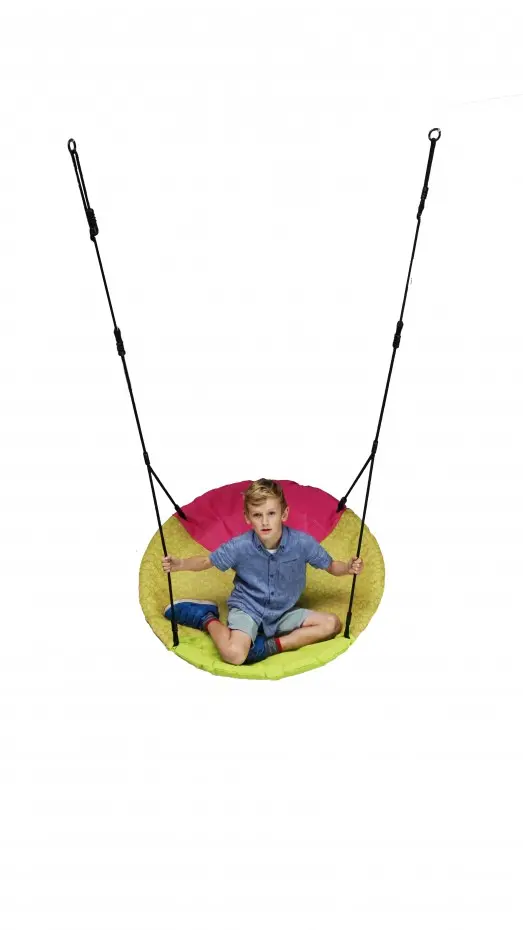 La balançoire nid Winkoh magenta/vert citron est une balançoire ronde qui garantit beaucoup de plaisir de jeu ! Plusieurs enfants peuvent se balancer, tourbillonner et jouer en même temps sur cette solide balançoire nid. La balançoire Winkoh est en tissu déperlant. Le panier est équipé de cordes BR noires, très adaptées aux enfants.