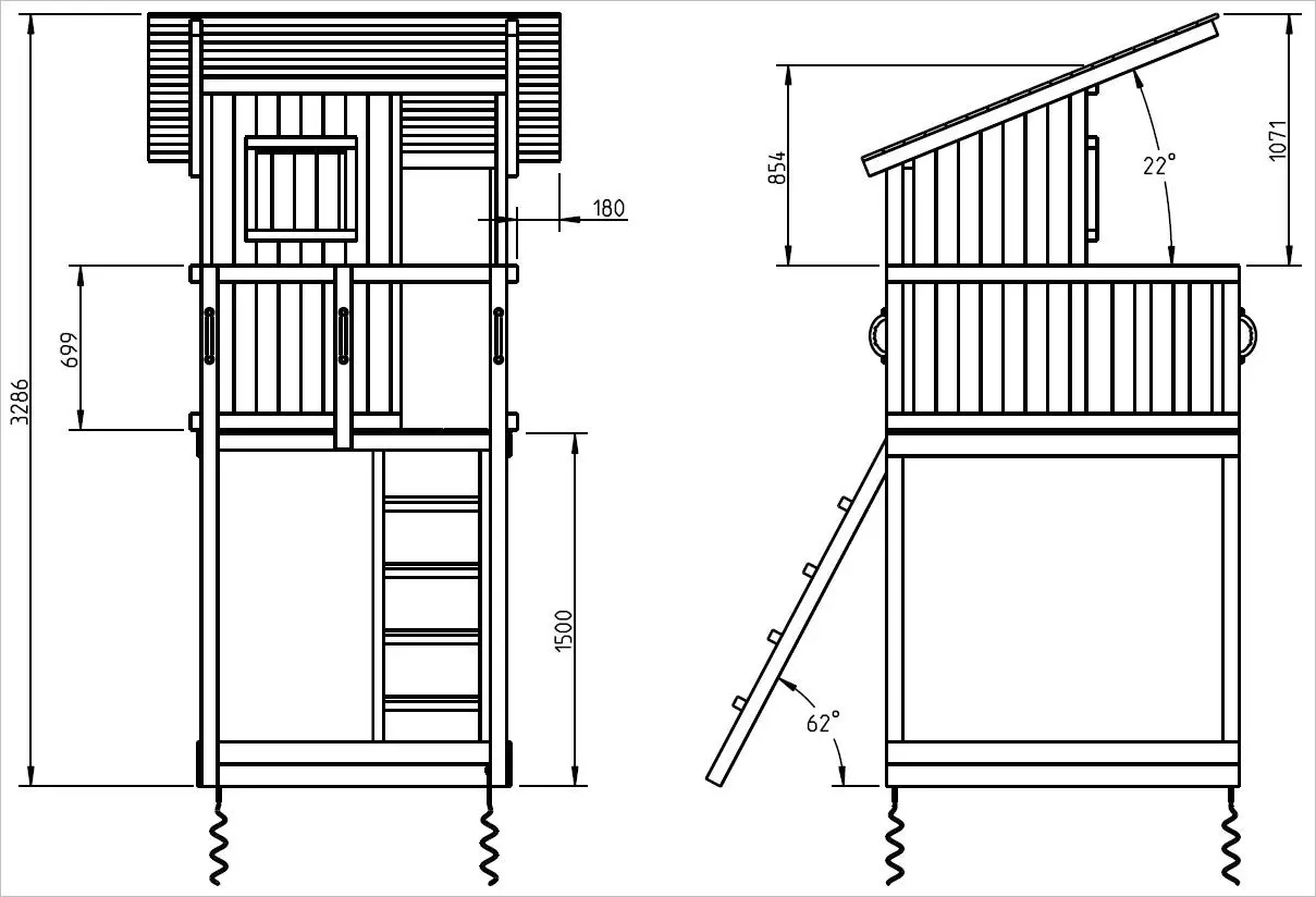 Tor de jeu Beach Hut est irrésistible grâce à son apparence caractéristique. Les enfants s'amuseront pendant des heures dans la charmante maisonnette avec balcon. Ils pourront également laisser libre cours à leur imagination dans le grand bac à sable sous la tour; en construisant des châteaux de sable, ils auront l'impression d'être à la plage. Cette tour de jeu a une hauteur de plate-forme de 150 cm. À l'arrière de la cabane, il y a une échelle, et à l'avant, une ouverture supplémentaire permet d'ajouter facilement un élément d'extension.
