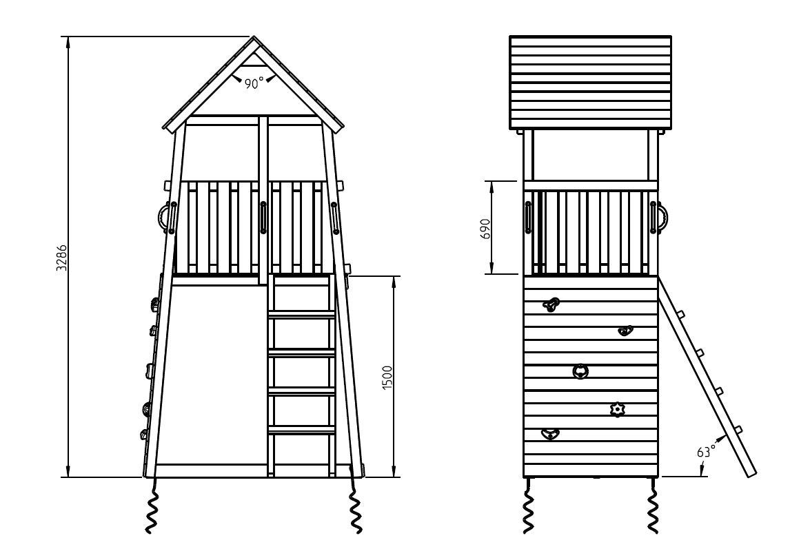 Profitez de vues panoramiques depuis cette tour de jeu Belvedere ! Idéale pour les petits jardins, avec la glissière et l’échelle à l’avant. Les parois inclinées et la large paroi d’escalade intégrée lui confèrent un aspect unique. La glissière est composée de trois sections bien ajustées. Hauteur de la plateforme : 150 cm.