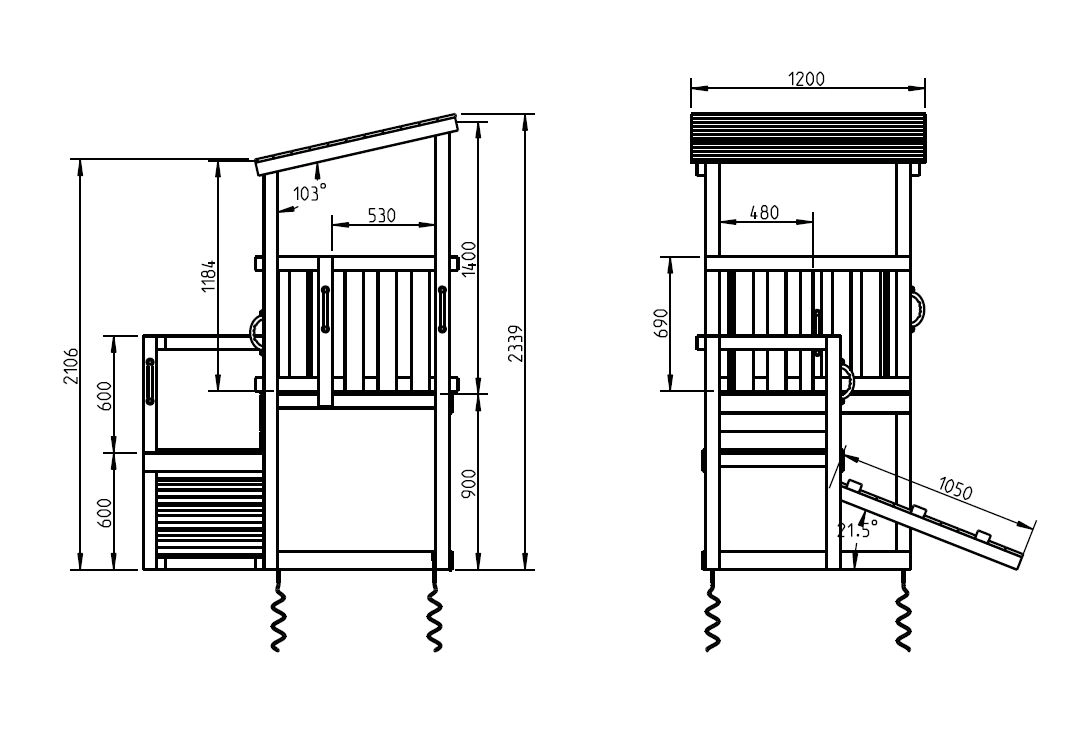 | Épaisseur des poutres en bois | 9x9cm |