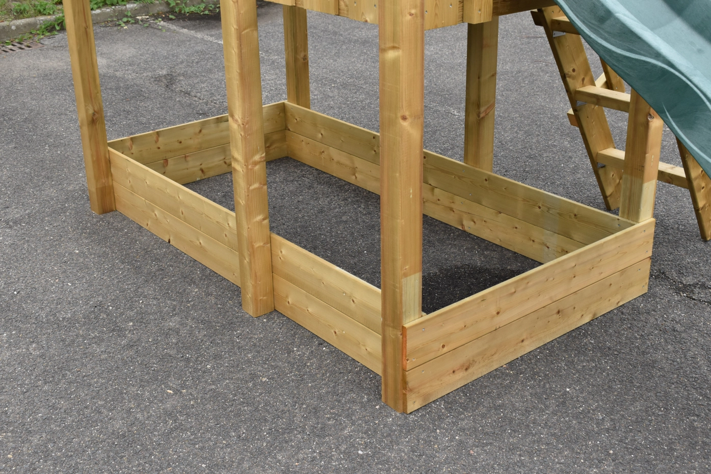 - Le bois d'épicéa d'Europe du Nord de la meilleure qualité. Le bois est imprégné sous pression, ce qui lui confère une classe de durabilité C.