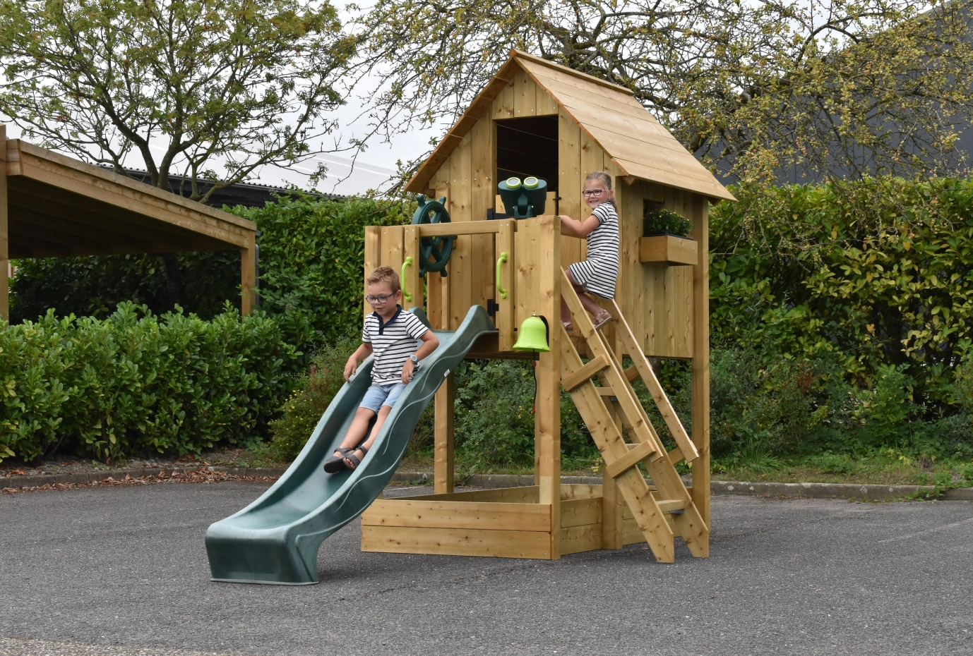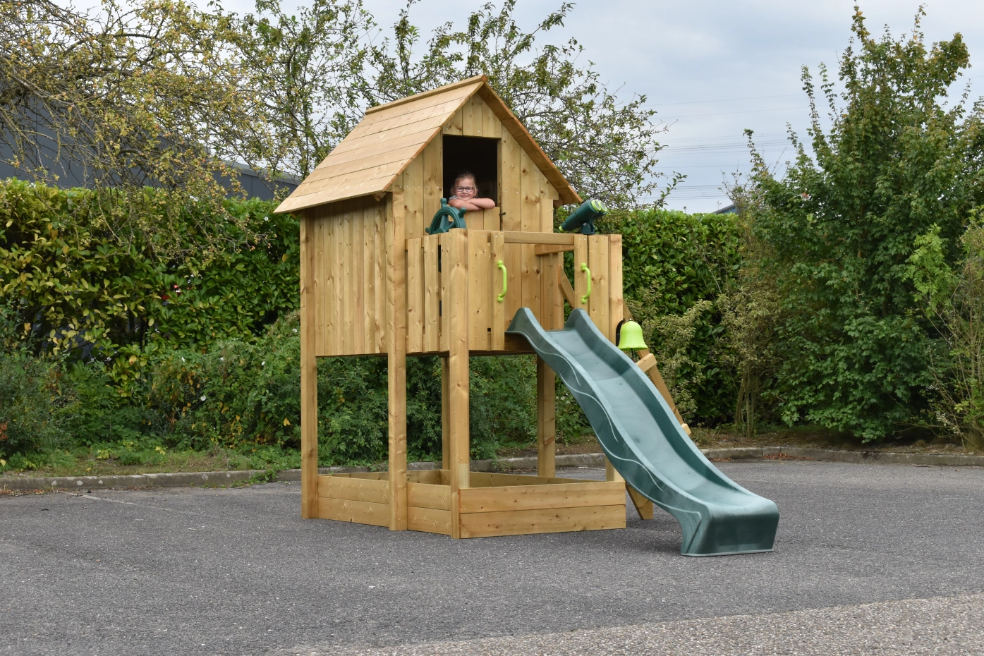 La maisonnette Dream 120 est le rêve de tous les enfants qui aiment jouer dehors. Cette maison fermée a une plate-forme à une hauteur de 120 cm, ce qui vous permet d'être bien au sec en hauteur. La maisonnette Dream est équipée d'un joli toboggan de 230 cm. L'escalier, adapté aux enfants, possède des marches plates et est doté de 2 rampes. Sous la structure, il y a beaucoup d'espace pour un bac à sable ou pour ranger d'autres jouets en vrac.