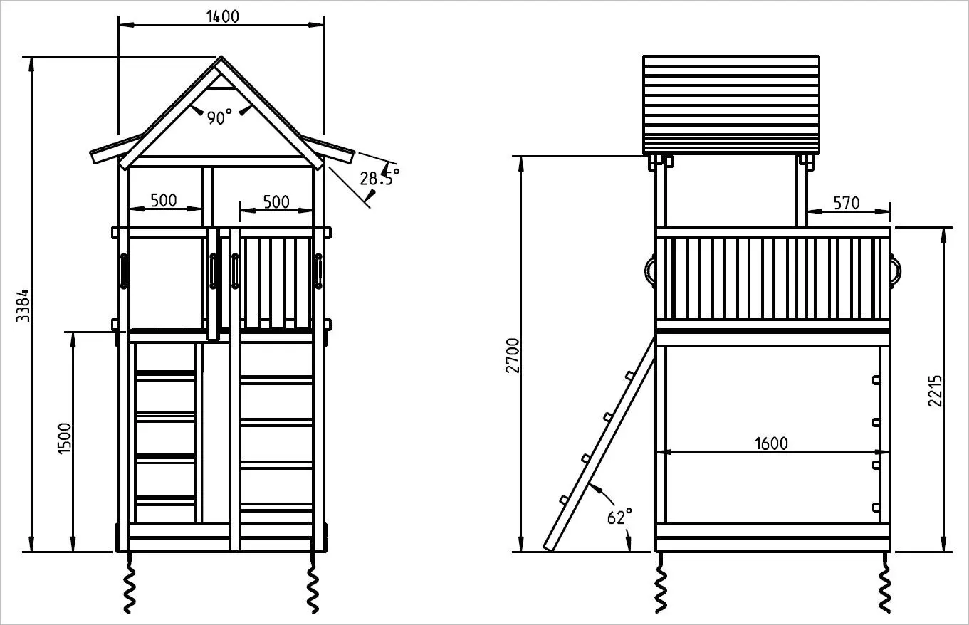 - Le bois d'épicéa d'Europe du Nord de la meilleure qualité. Le bois est imprégné sous pression, ce qui lui confère une classe de durabilité C.