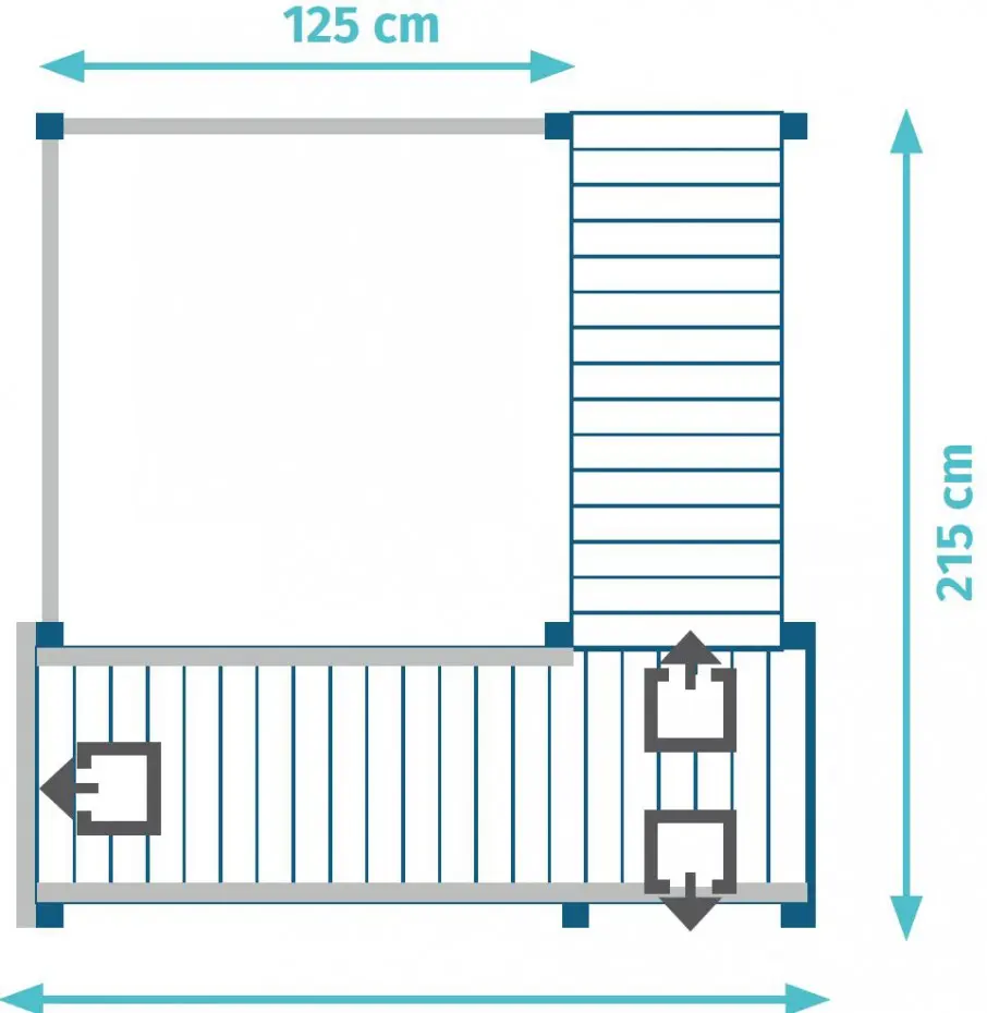 La plateforme supérieure est équipée d'un toboggan. Le toboggan est composé de trois parties qui peuvent être facilement assemblées. La plateforme inférieure peut être utilisée comme espace de repos ou simplement pour se détendre.