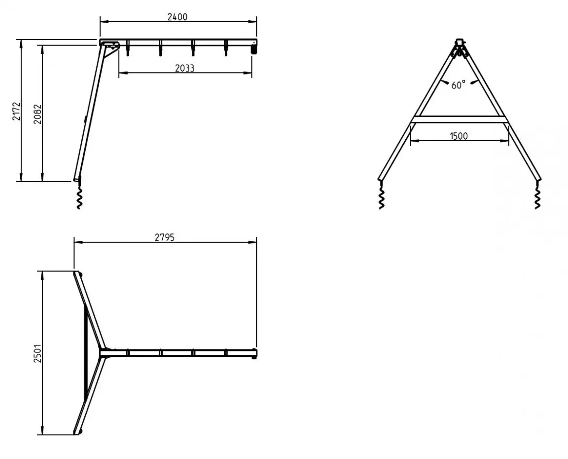 - La balançoire est dotée d'articulations d'angle robustes en acier.