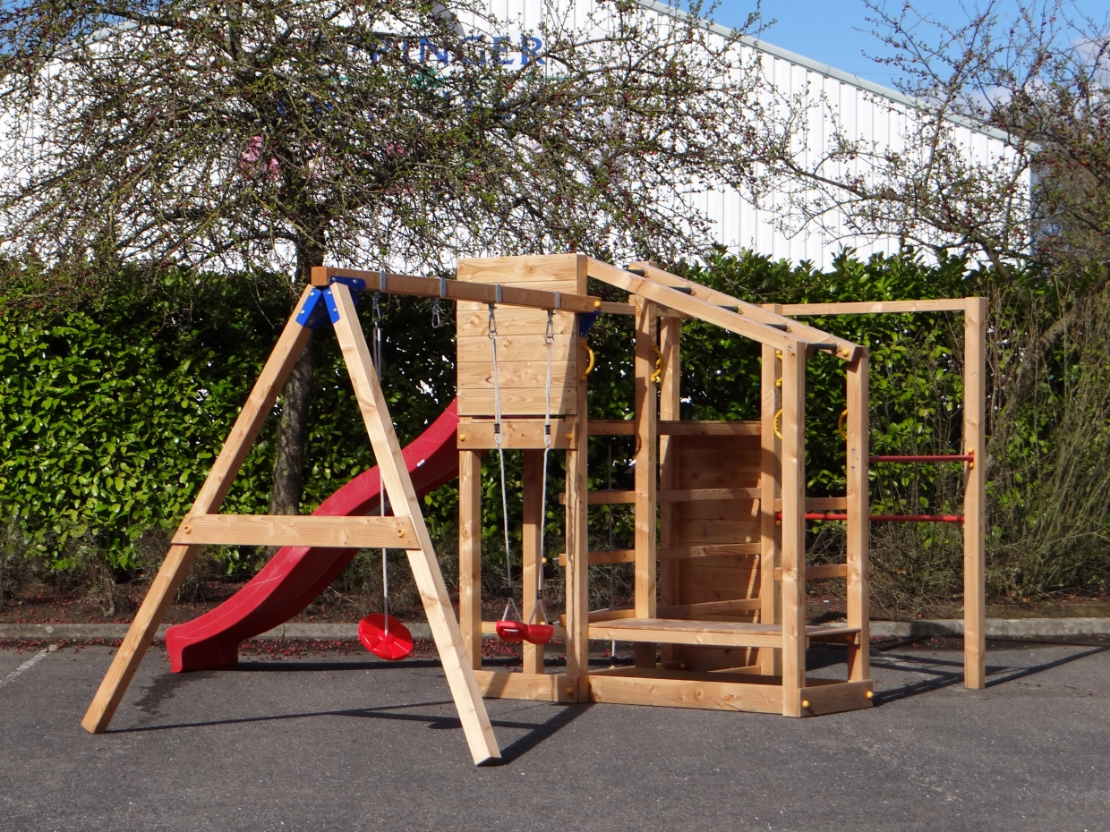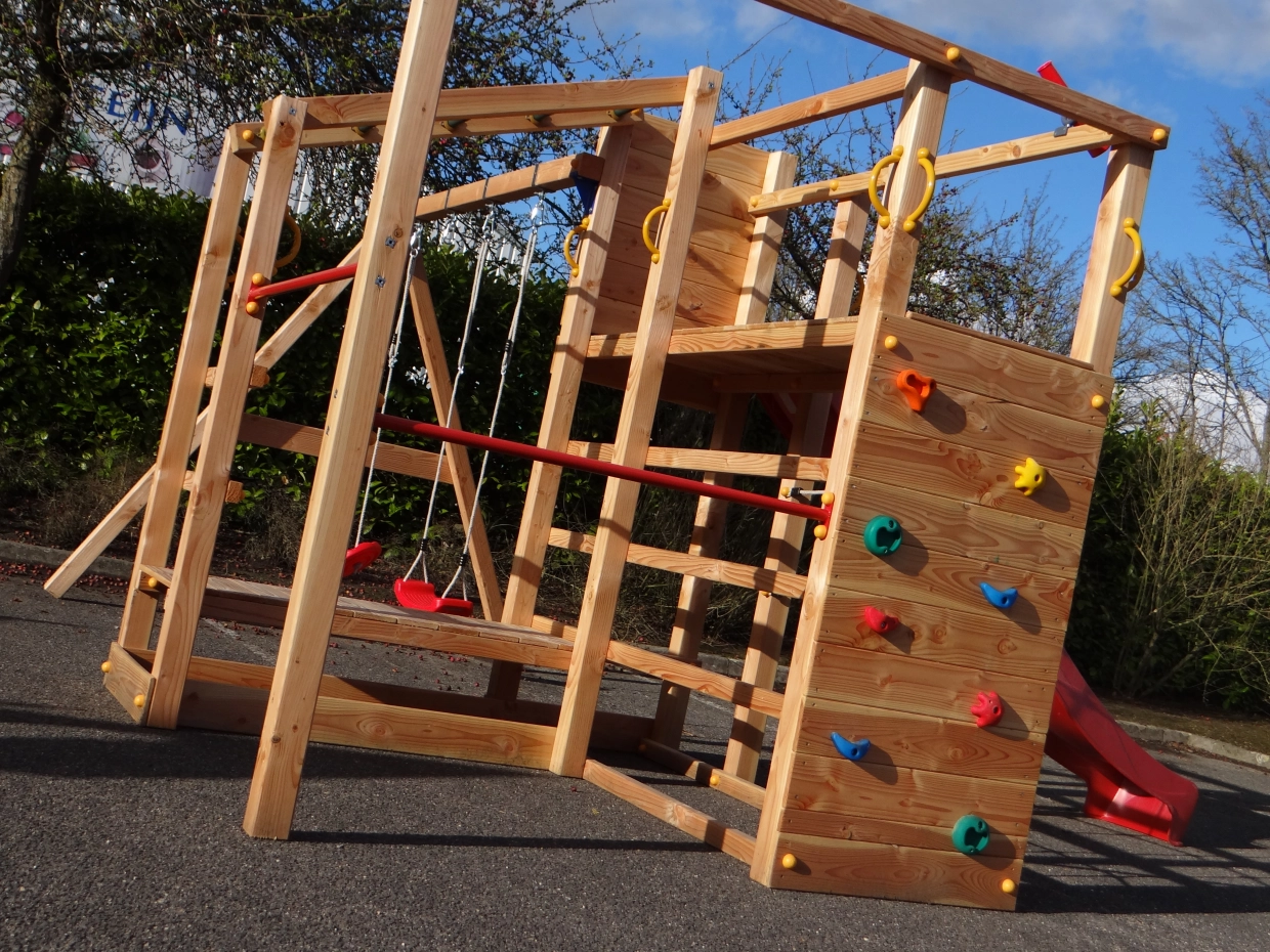 En bref : une tour d'escalade stimulante, fabriquée en sapin de Douglas.
