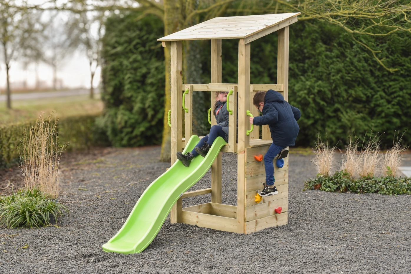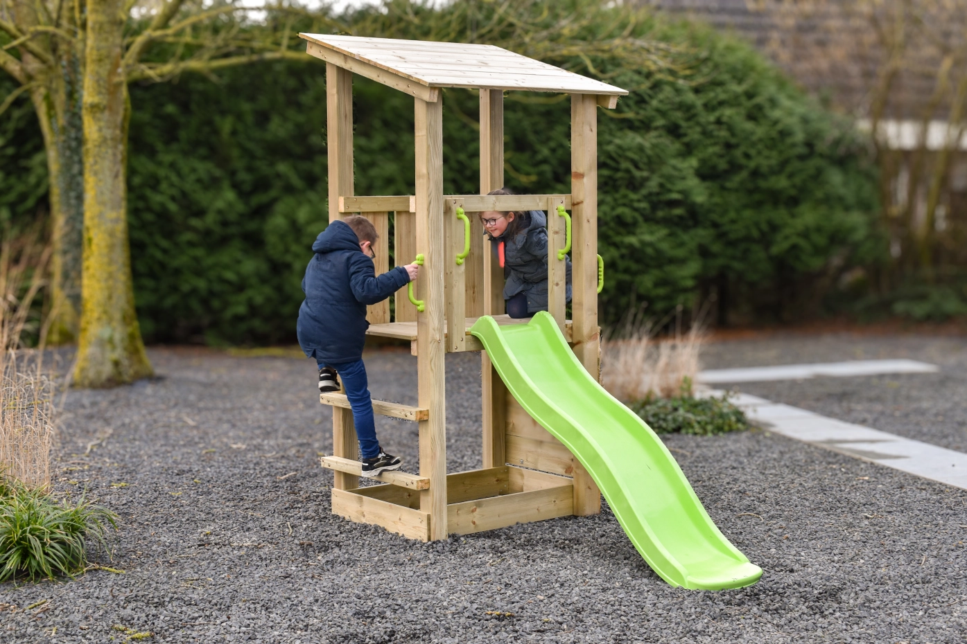 Que ce soit pour une mission secrète, une partie de cache-cache ou simplement pour grimper et glisser – la maisonnette Plan 90+ est l’endroit rêvé où les enfants peuvent laisser libre cours à leur imagination tout en s’amusant dehors pendant des heures.