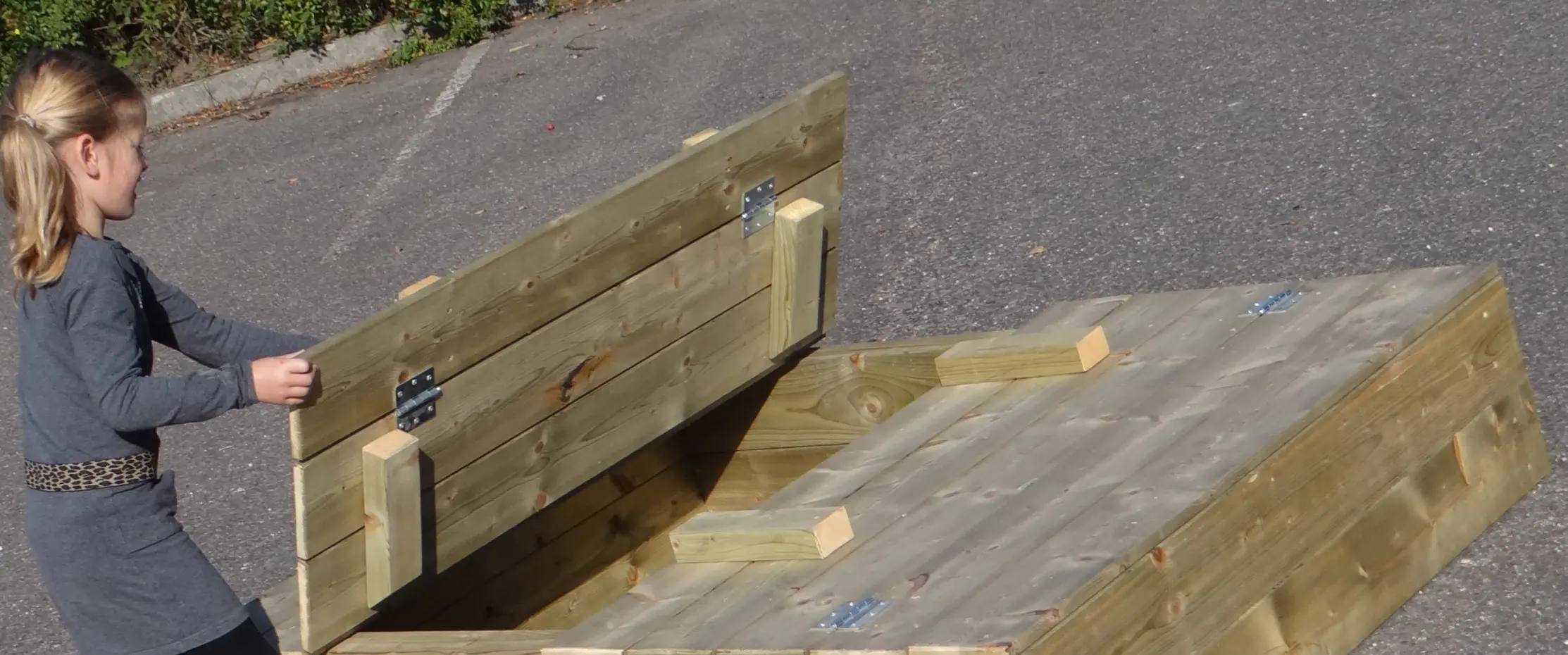 - Le couvercle du bac à sable se replie facilement, créant ainsi 2 bancs.