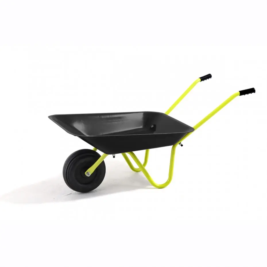 Cette brouette est fabriquée pour enfants, pour qu'ils puissent également travailler dans le jardin. ✓ Tube avec poignées en caoutchouc ✓ Est livré en kit de construction ✓ Épaisseur de l'acier de 0,6 mm ✓ Volume maximal : 20 kg ✓ Dimensions: 75x38x28cm ✓ Couleur cadre: jaune/vert ✓ Couleur brouette: noir
