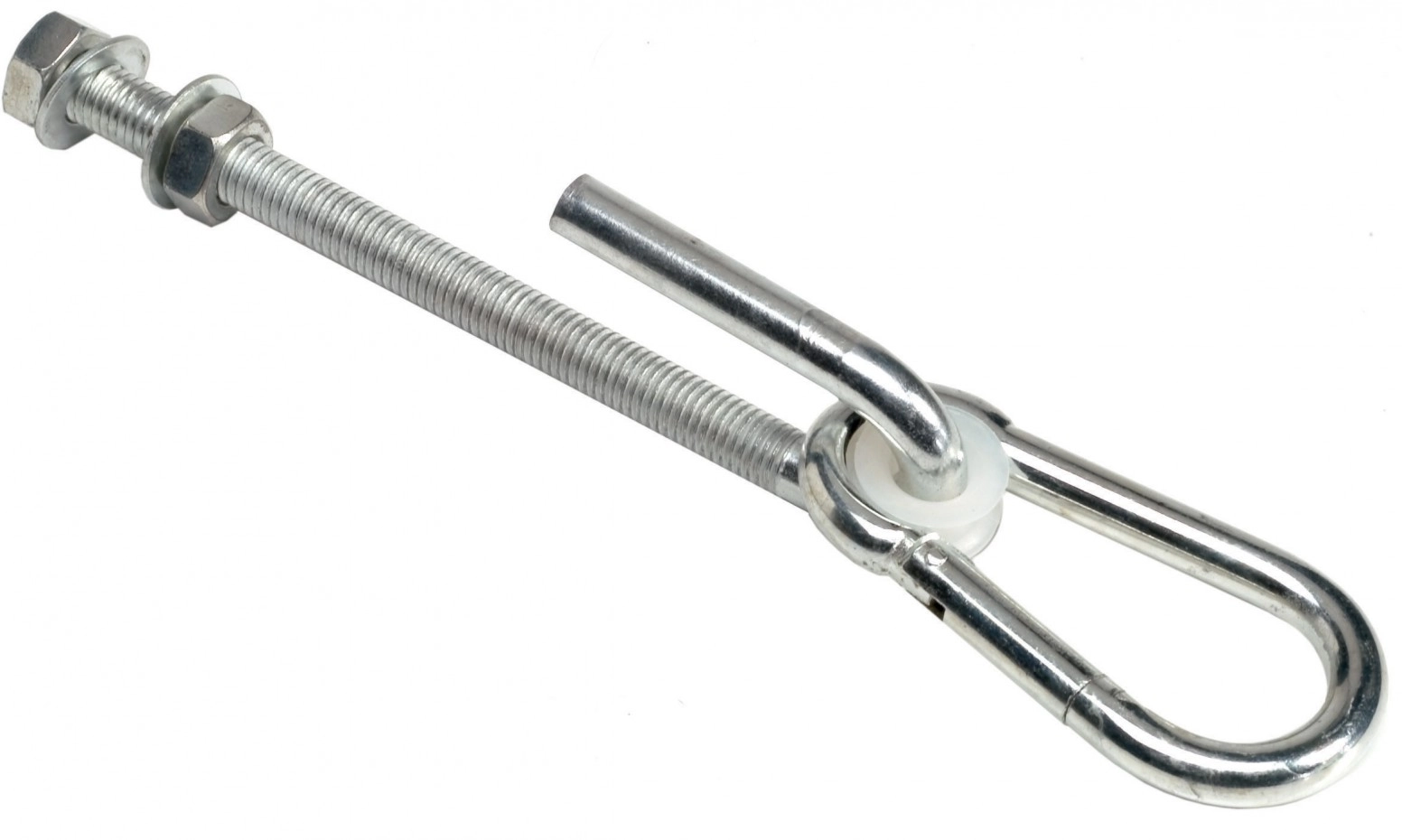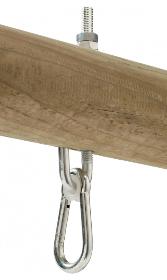 Crochet de balançoire 'Traversant' type J. Ce crochet de balançoire se fixe à travers un trou dans une poutre. Avec une connexion à mousqueton pour un montage et un démontage rapide du siège de balançoire. Convient aux poutres de balançoire jusqu'à 12 cm d'épaisseur. La longueur de la tige du crochet de balançoire est de 14 cm. Livraison à l'unité.