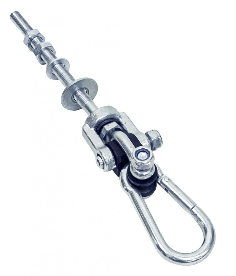 Crochet de balançoire simple avec suspension à 1 point en acier galvanisé, équipé de roulements en plastique POM pour usage intensif.