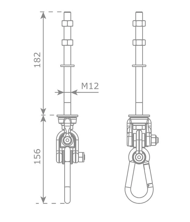 La tige filetée a une longueur totale de 18,2 cm, ce qui rend le crochet adapté aux poutres d'un diamètre/épaisseur allant jusqu'à 16 cm.