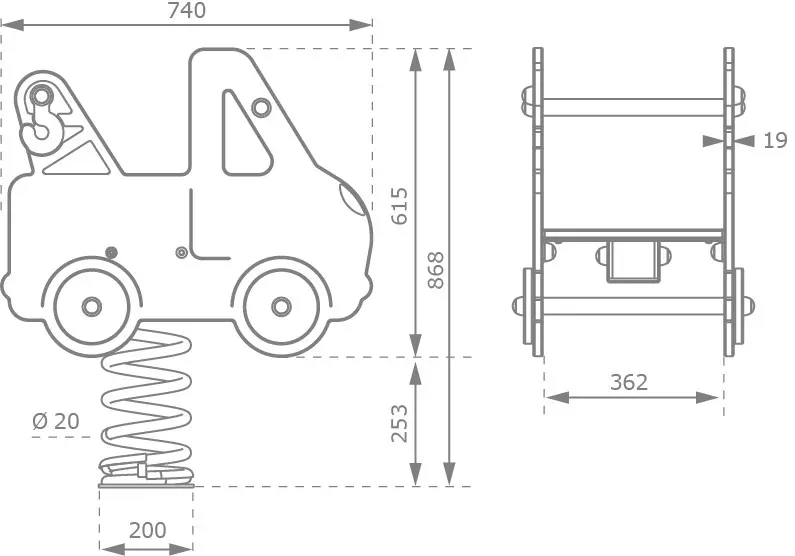 Jeu ressort Dépanneuse est un beau jeu ressort robust pour les terrains de jeu et l'usage professionnel. Plus amusant sera expérimenté avec le cavalier de printemps dépanneuse! Standard non muni d'un dossier. Le dossier est disponible en option.